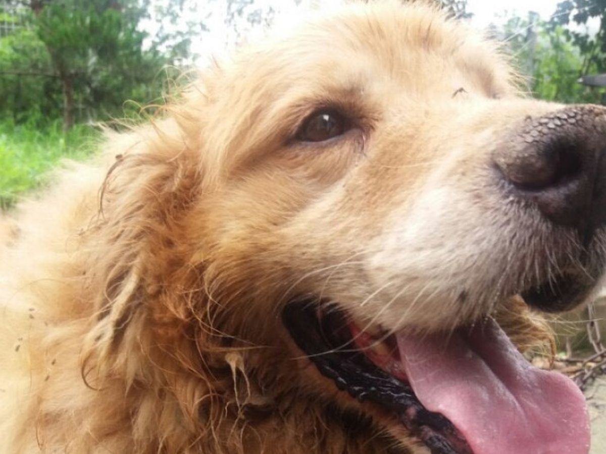 Hi! This is Dullie from South Korea. Dullie is a lovable golden retriever who hasn't yet received proper love from humans. He has been adopted by a family in Korea as a puppy but as soon as he grew up bigger the family left the dog in rural village with family's uncle (the current owner). But the owner did not provide him any basic cares like grooming, sufficent water to drink, and basic medical needs. This owner is my mom's neighbor and she was shocked at the condition of Dullie when she visited Korea. Dullie lives in a cold caged dog house that does not have any protection against Korea's cold winter. He was never groomed and currently has to suffer Korea's hot humid summer with bugs mingled in his fur. He is currently chained up in short leash (also a cold metal collar around his neck that hasn't been cleaned or wash past years) same exact area for past few years. The owner never walked him, petted him, or gave him love.