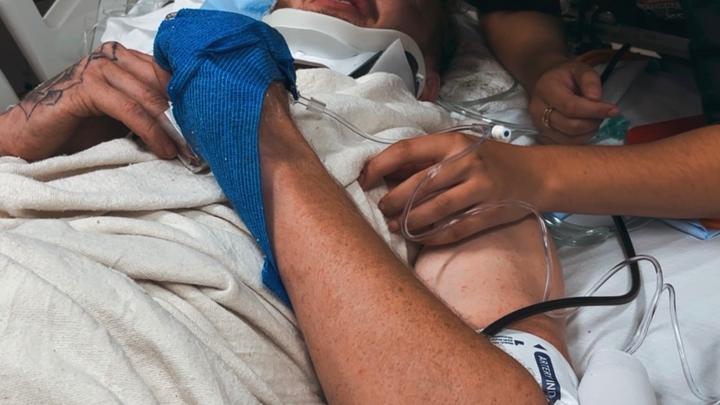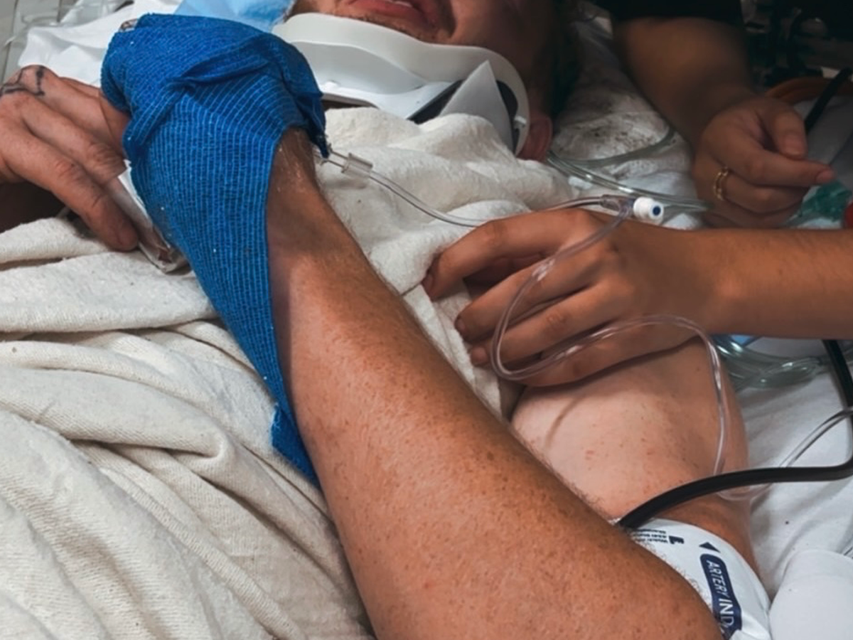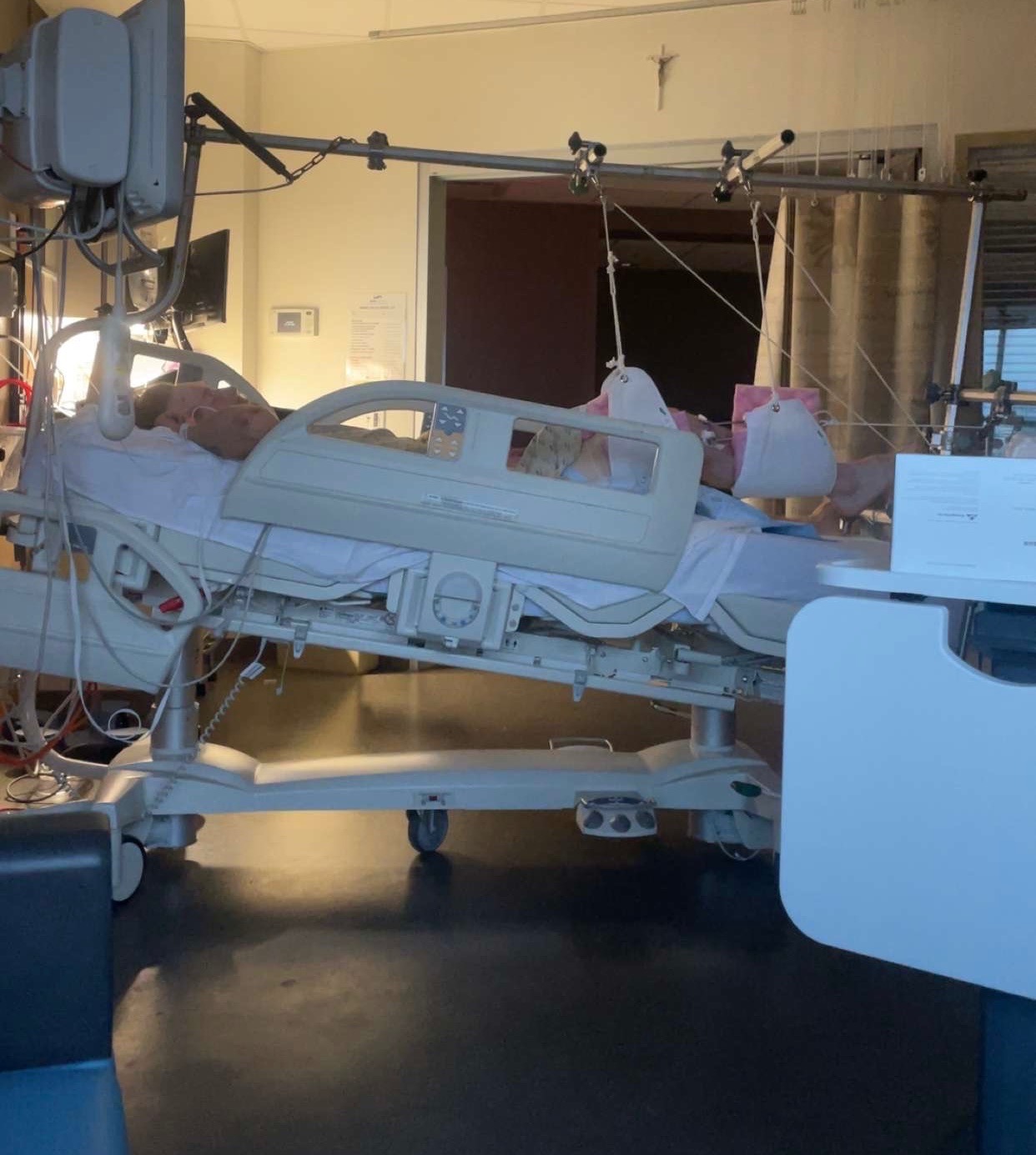 On Monday Tyler went to his typical tree job and ended up falling out of a 30ft tree and being completely submerged into water. From there, he was airlifted to SLU and straight to trauma. Currently, he has a small brain bleed, compound fracture in his femur, hip popped out of socket, a small liver puncture, & chipped vertebrae. This morning he underwent surgery and got a rod placed in his femur.