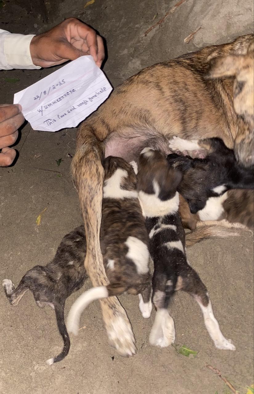 I discovered a heartbreaking scene today that I can't ignore. A stray mother dog with 9 tiny puppies is dying before my eyes. She's so weak she can't even lift her head, there's a terrible smell indicating serious illness, and her babies are crying for milk she may not be able to provide much longer.