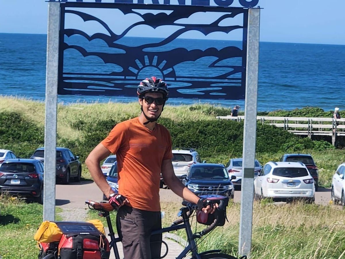 he got there on two pushbike wheels..a tent and with a lot of love and support. The Atlantic Canada has been amazing, is what I hear.