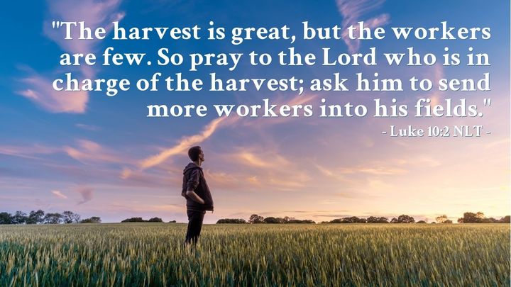 “Then he said to his disciples, ‘The harvest is plentiful, but the laborers are few; therefore pray earnestly to the Lord of the harvest to send out laborers into his harvest’” Matthew 9:37-38.