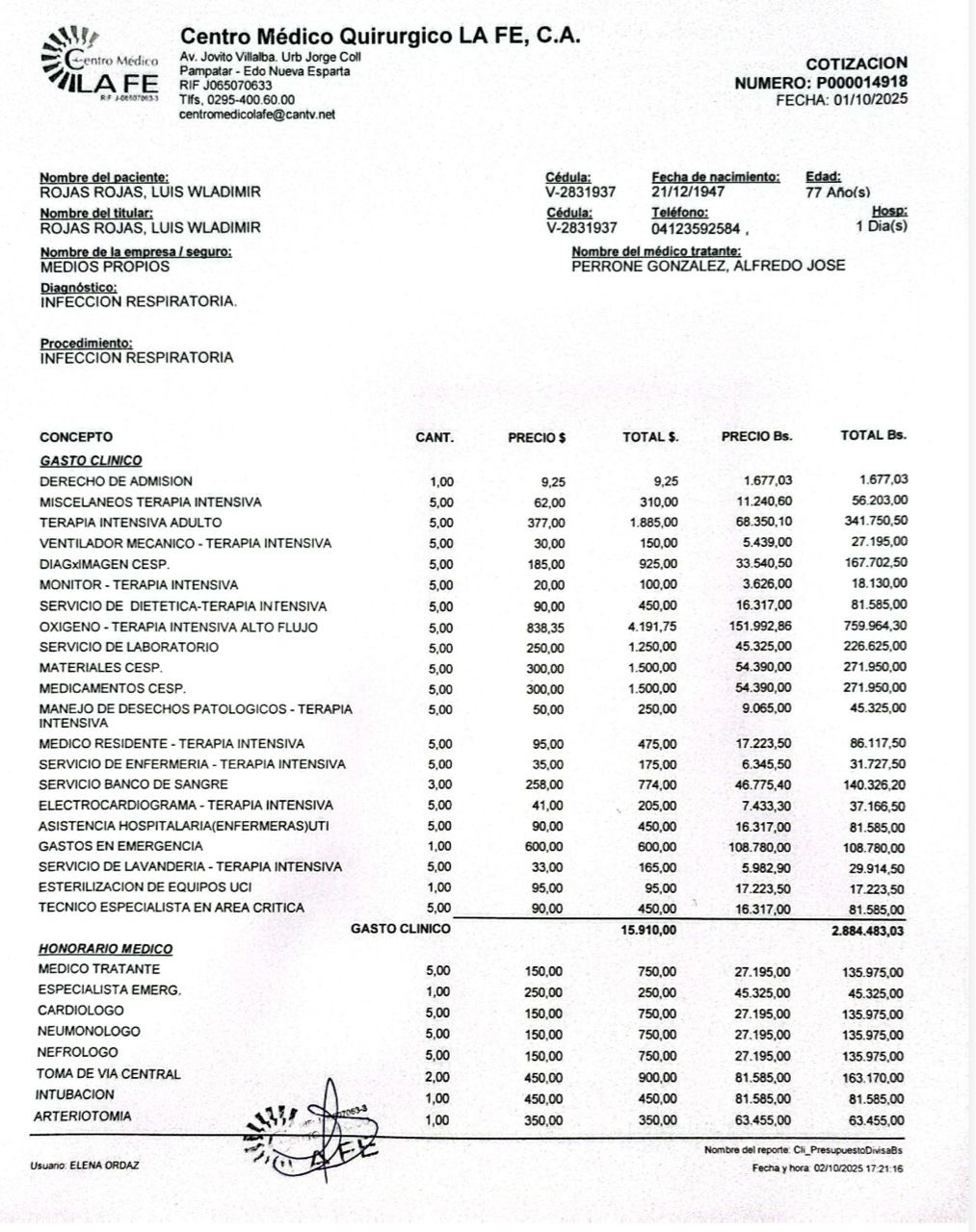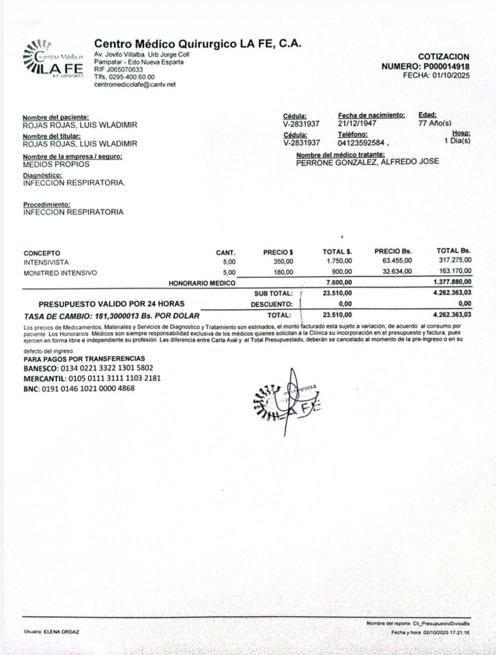 Wladimir padece de deficiencia cardíaca, una condición que recientemente se ha complicado gravemente tras sufrir un derrame pleural. Esto ha afectado aún más su corazón y, lamentablemente, también ha comprometido su sistema renal. Actualmente, se encuentra en terapia intensiva, luchando cada día con un cuadro clínico complejo y delicado.