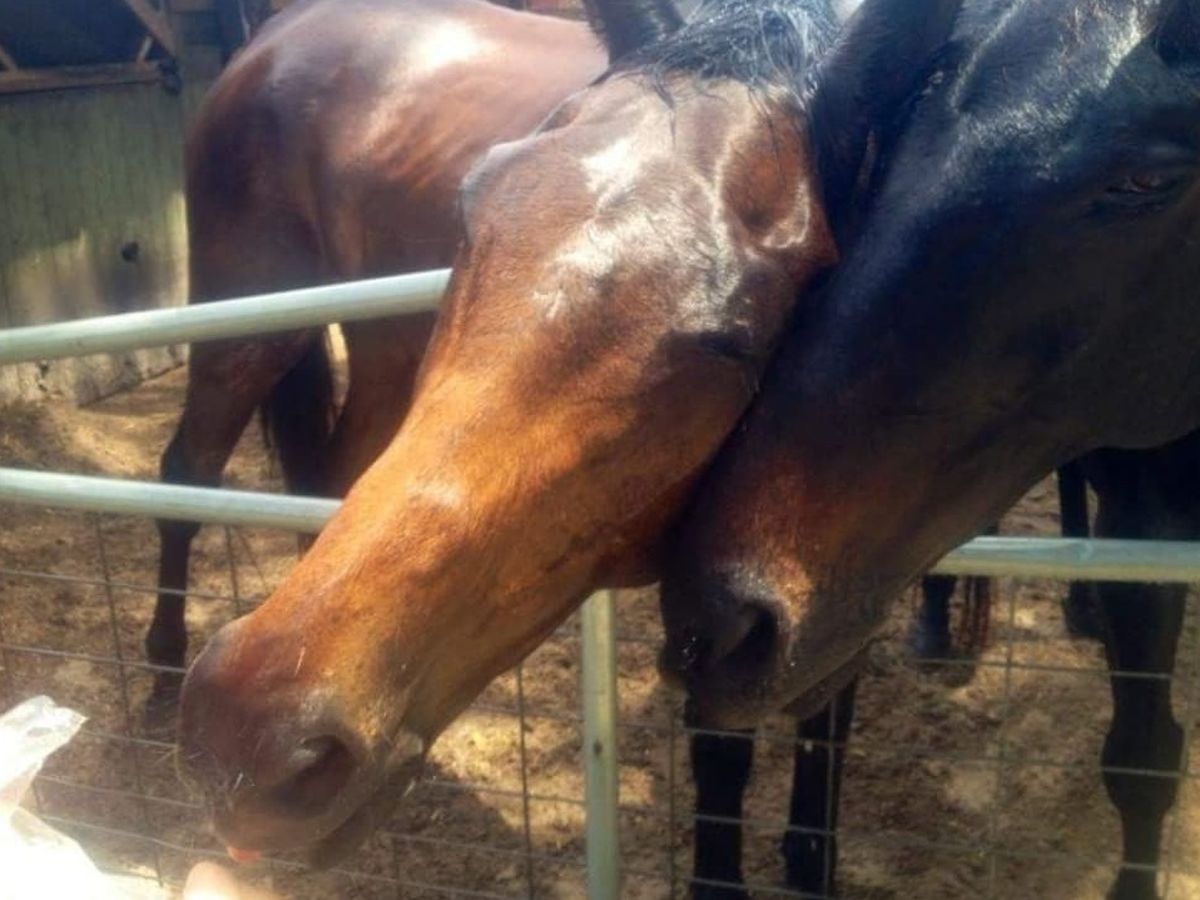 Pictured is Jax with his best buddy Socrates (darker horse) who also misses him terribly.