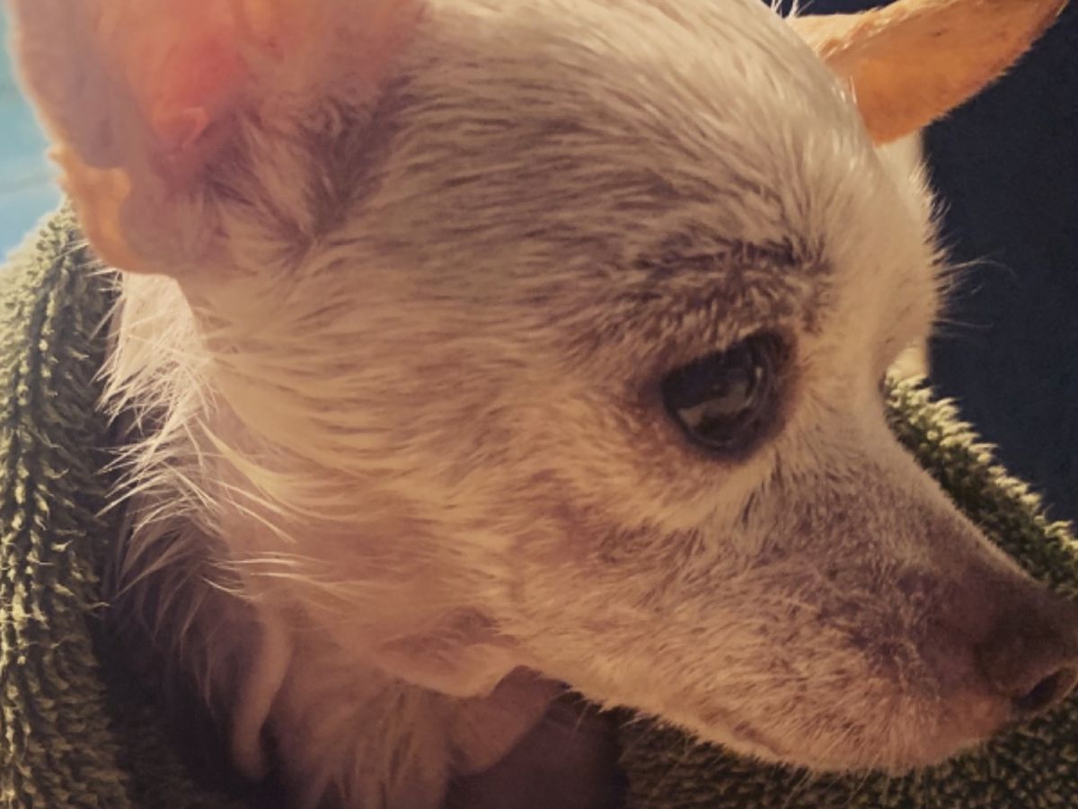 However, the story of little Francis is not over. She’s going to the vet on Monday for a full exam. The emergency vet noted she has alopecia which explains her missing fur. She also has a heart murmur, something I’m told is common in chihuahuas.