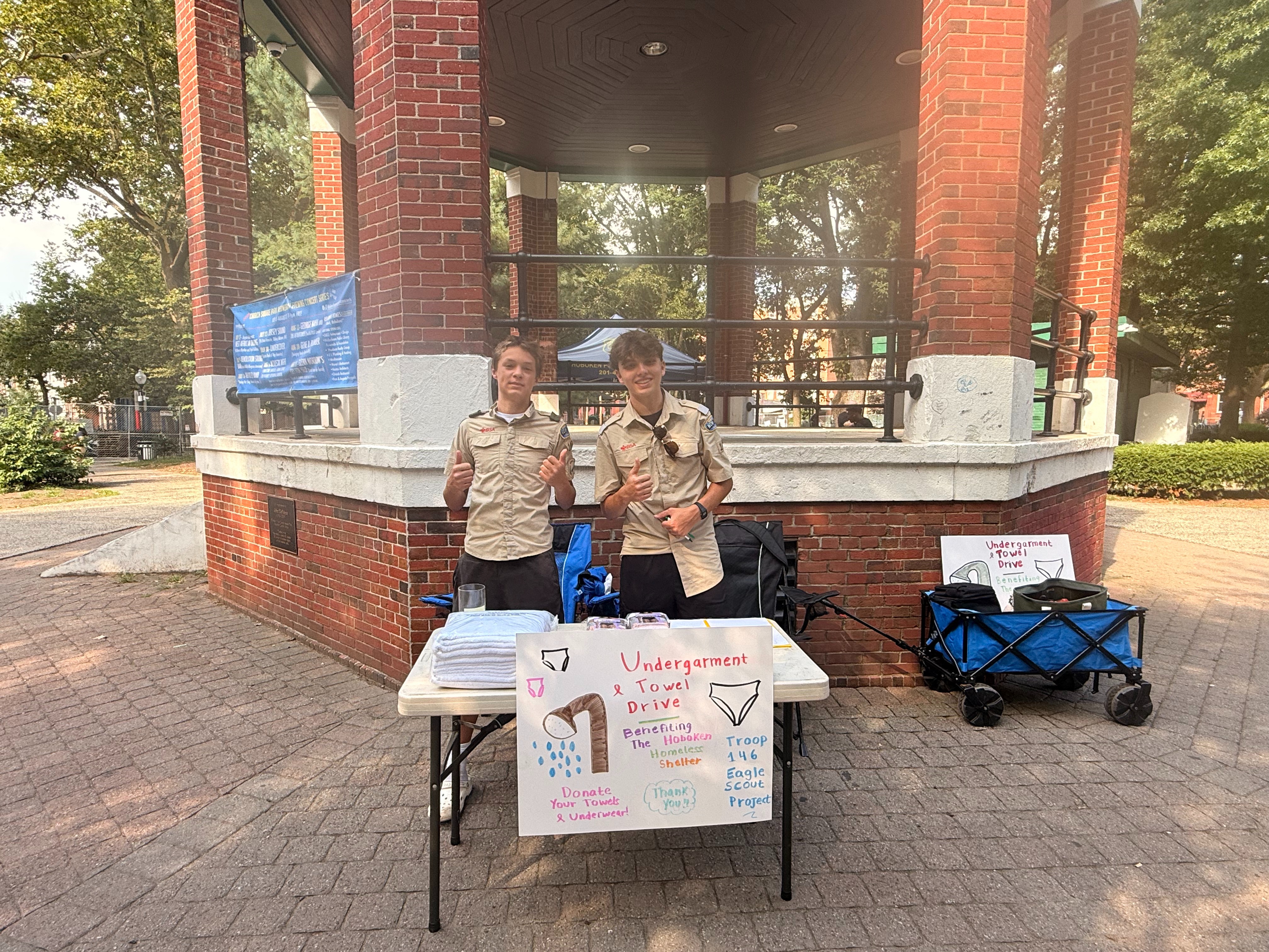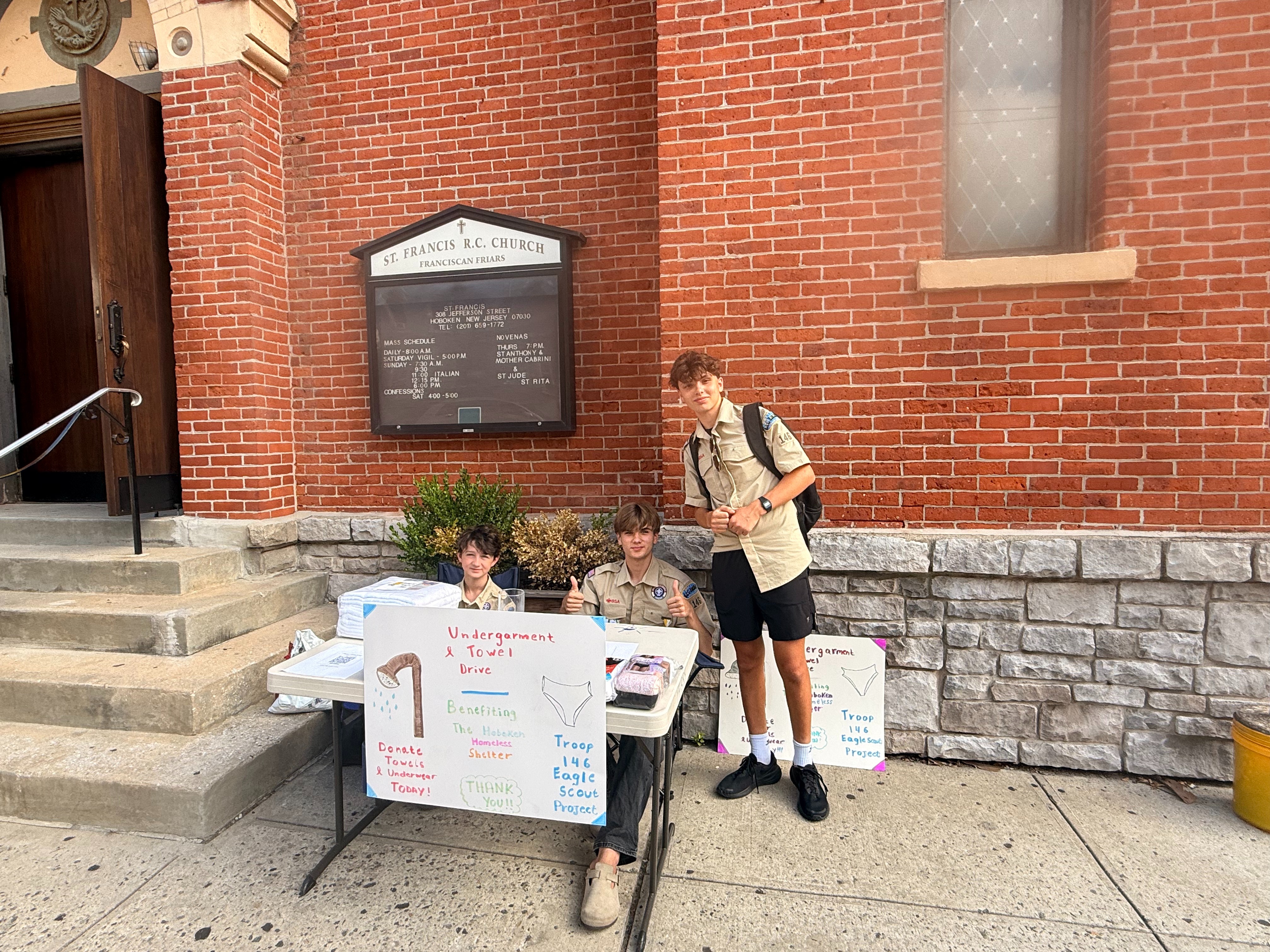 Hello. I’m a Life Scout in Troop 146 in Hoboken, currently working on my Eagle Scout project where I’m partnering with the Hoboken Homeless Shelter https://www.hobokenshelter.org to collect undergarments and towels—items that are critically needed to help run its shower program.