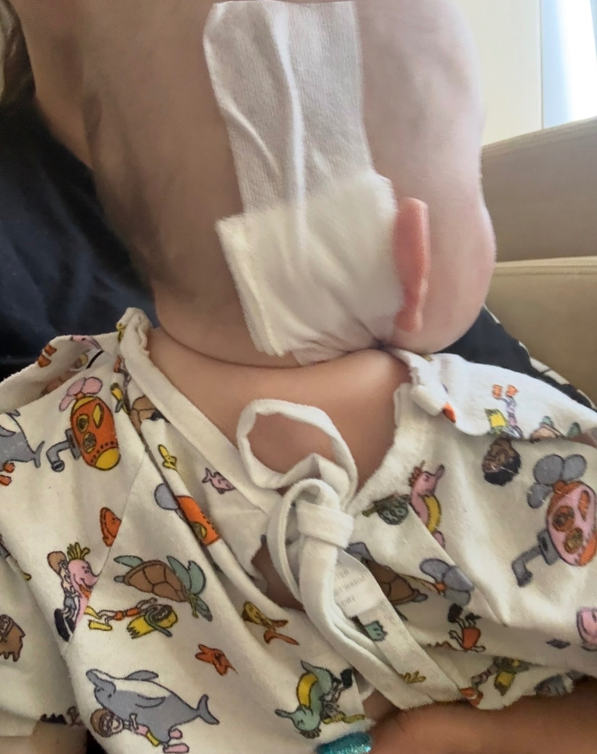 By Thursday the 16th, something was visibly wrong with his ear/bone behind the ear. A close friend saw his ear and immediately urged us to go to the ER, warning it could be something much more serious. We went that night & waited 6 hours to see a Dr. Immediately the Dr told us not to give him anymore food because she knew Easton needed surgery.