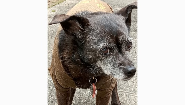 My name is Olive, an almost 17 year old All American dog and me and my human need your help to recover and rebuild from losing our Altadena home in the Eaton Fire.