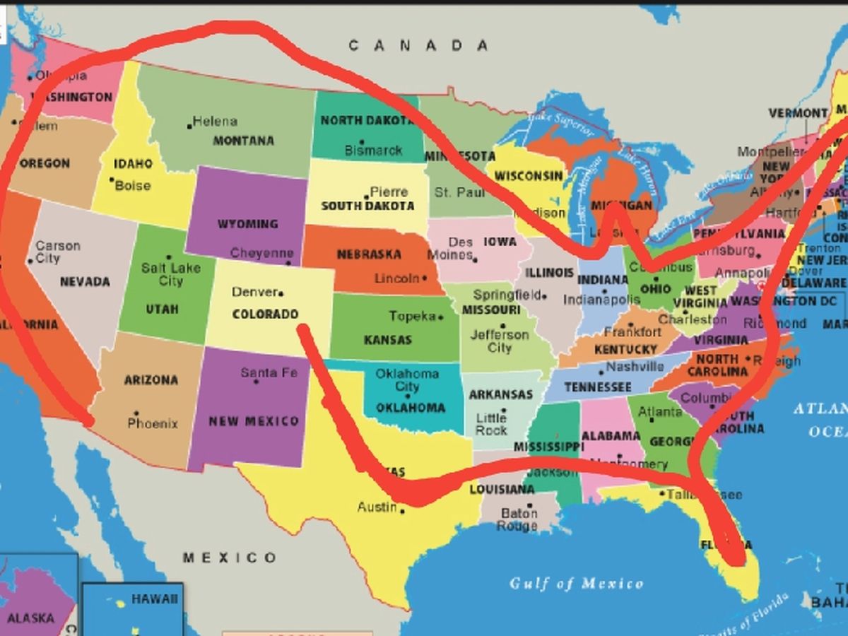 Our estimated Route includes- California, Oregon, Washington, (possibly parts of Canada), Minnesota, Michigan, Maine, New York, New Jersey, Florida, and Texas!