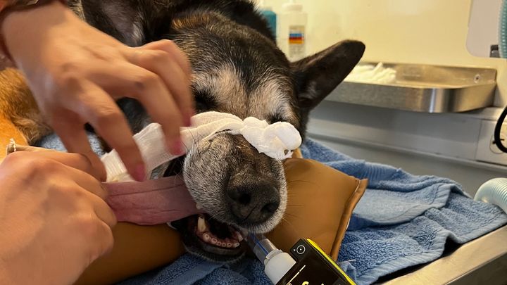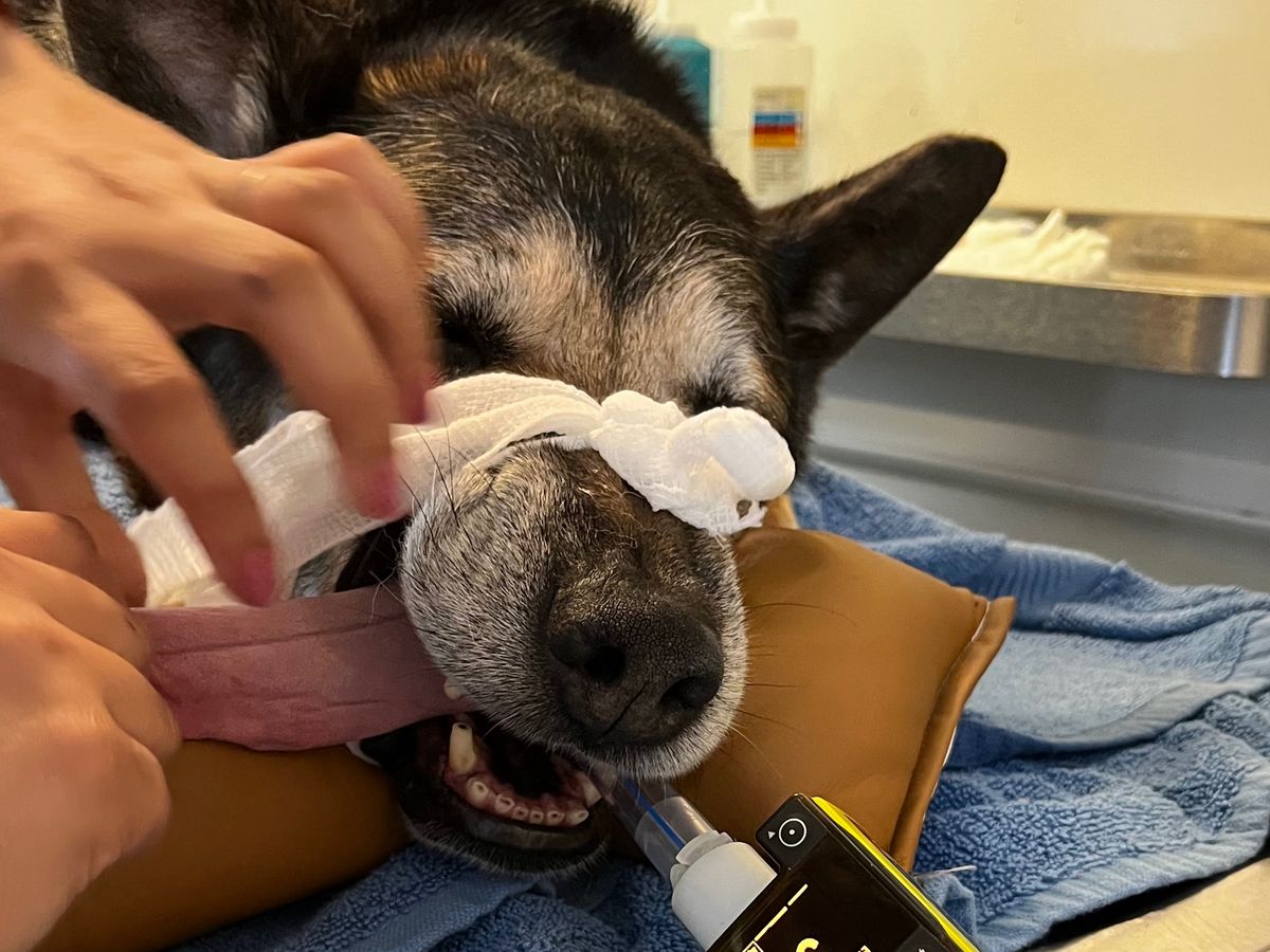 He’s had two rounds of antibiotics, he’s been neutered, and has undergone 1 vaccination since I took him in. He’s a wonderful dog, but he’s in severe pain daily despite the Rovera I give him for his hip pain. If you brush his nose by accident, he yelps out in pain. He gags and he sneezes violently where large quantities of mucus are released. It’s been very trying.