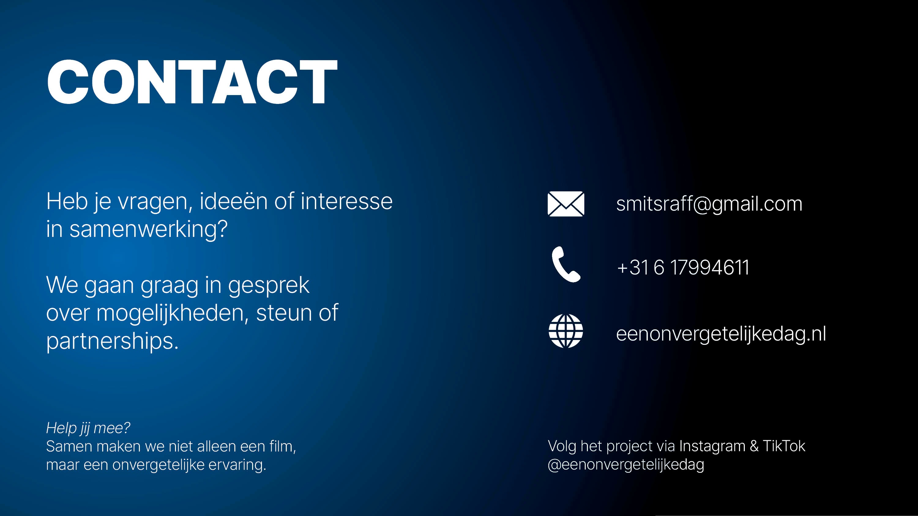 Met jouw hulp maken we niet alleen een film, maar ook een onvergetelijke ervaring.