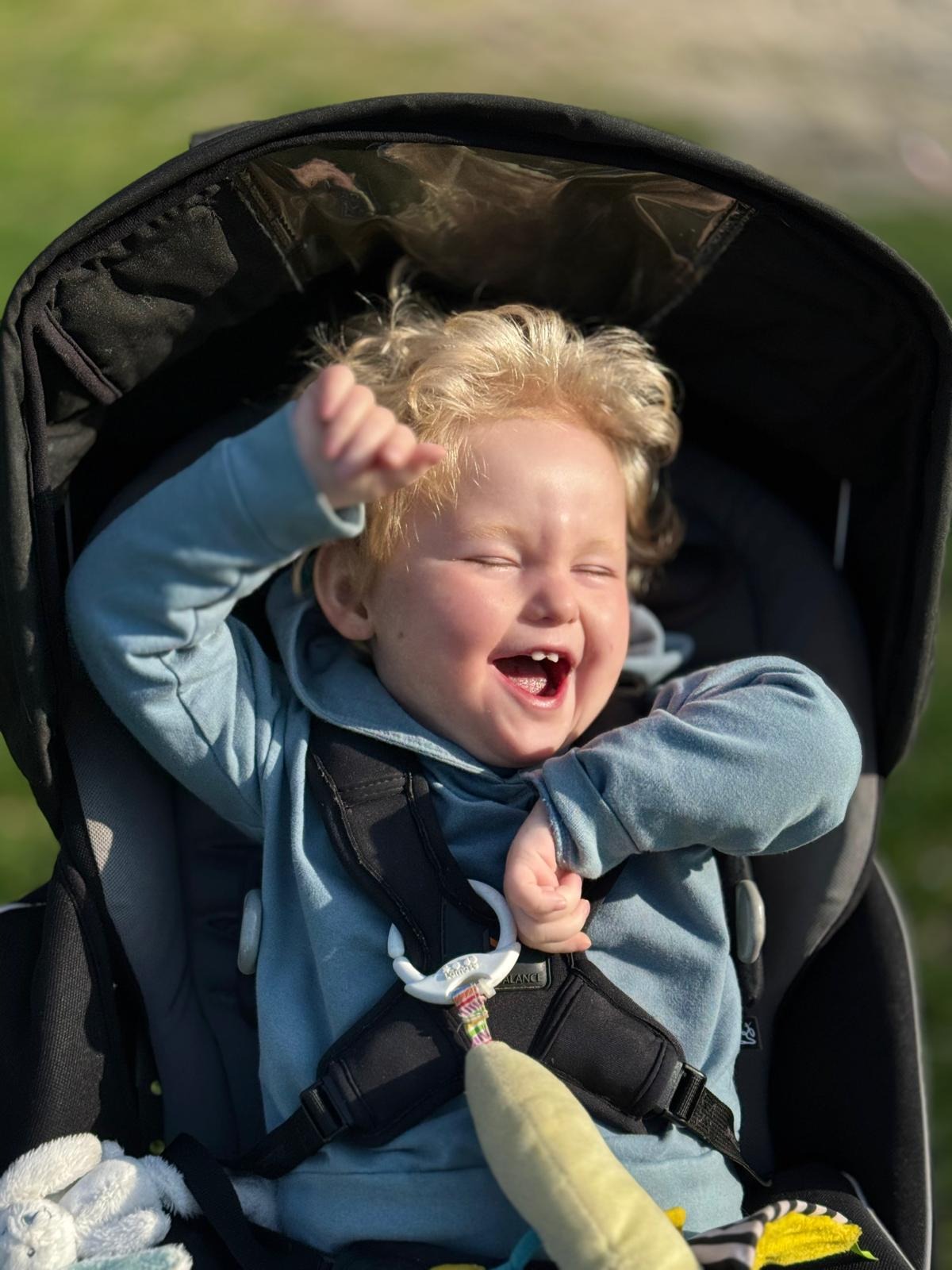 We moeten Jari van tillift naar rolstoel tillen, van rolstoel naar de aangepaste auto stoel (en dan eigenlijk van rolstoel naar tillift en dan de auto in maar dat is nog meer gedoe en prikkels..