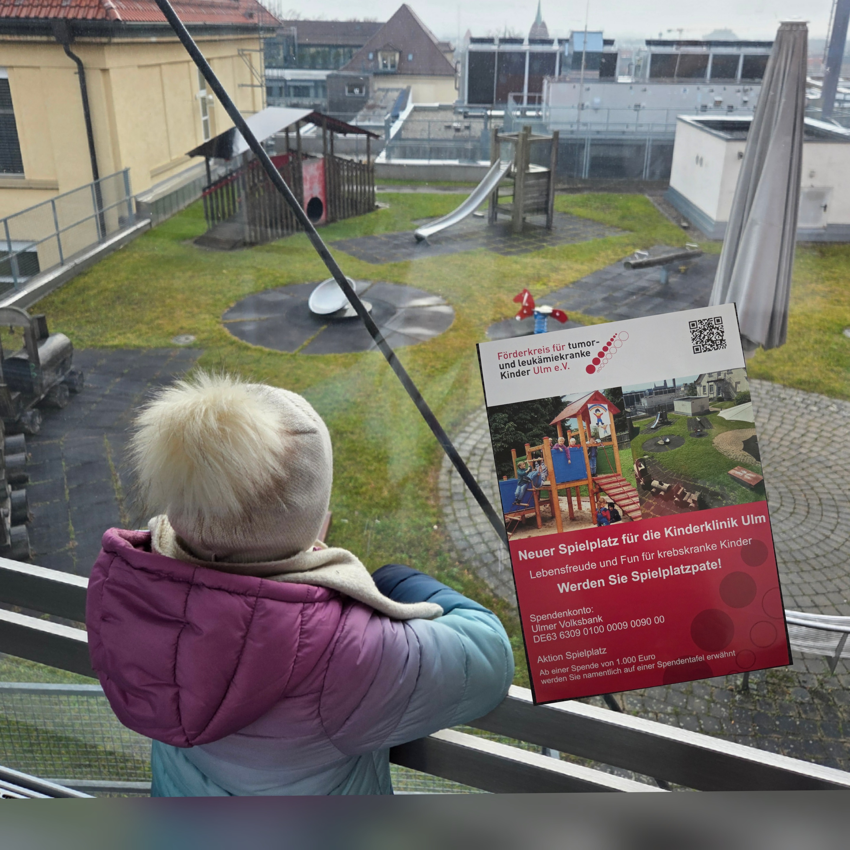 Wenn viele Spenden zusammen kommen, möchten wir gerne auch ein Projekt unterstützen, welches uns sehr am Herzen liegt und ein Ort betrifft, an dem Sanji bei Krankenhausterminen mehrmals die Woche sehr viel Zeit verbringt.... gemeint ist die Neugestaltung des Kinderspielplatzes der Kinderklinik Ulm (Flyer siehe Fotos).