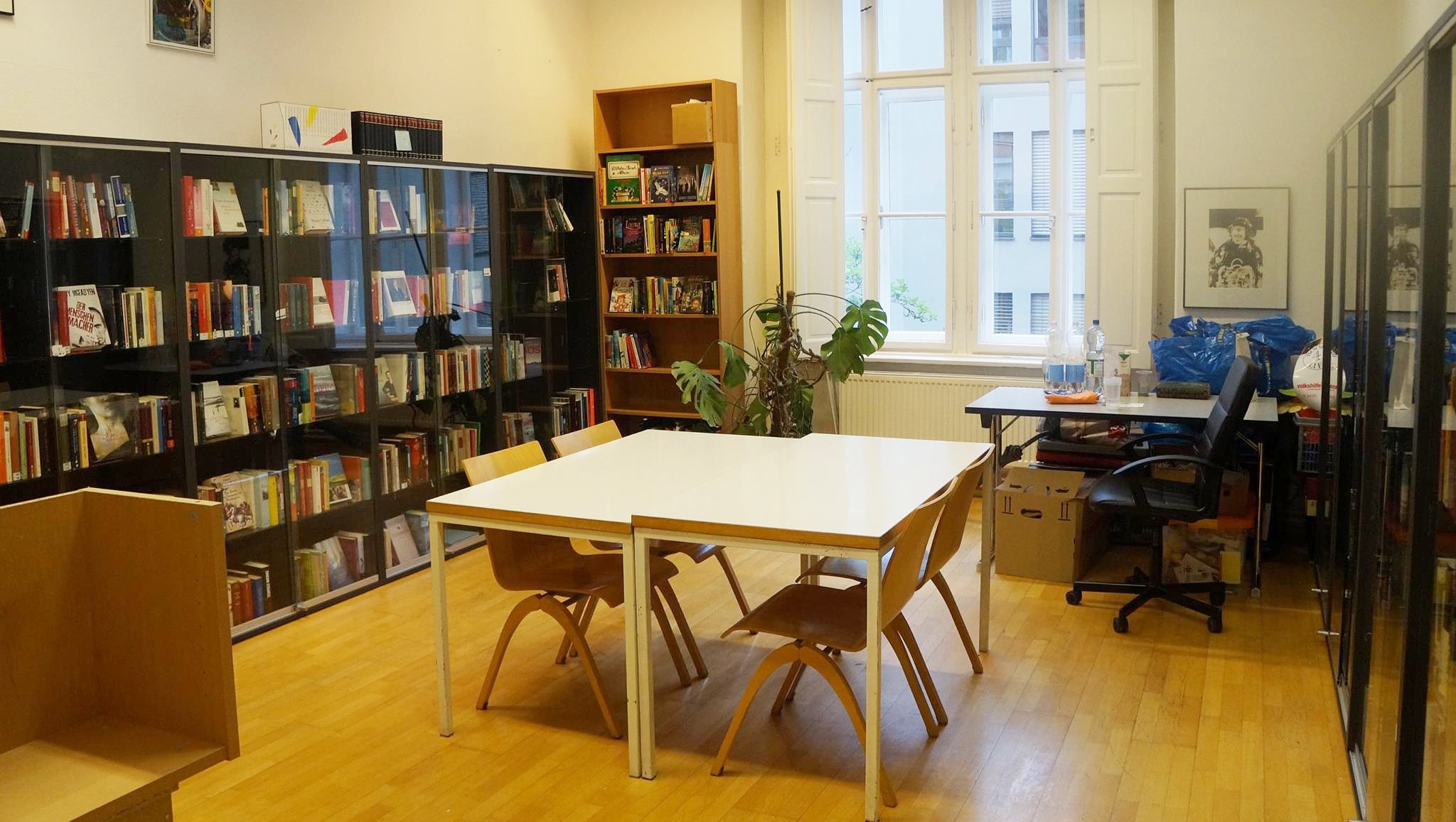 Durch den Umstand, dass wir unseren bisherigen Standort recht kurzfristig schließen mussten, gab es wenig Möglichkeiten, um einen „Räumungsverkauf“ zu veranstalten. Um kostenpflichtige Lagerflächen zu vermeiden, wurde der bestehende Bestand an Büchern zur Zwischenlagerung bei einzelnen Mitgliedern aufgeteilt. Sämtliche Möbel wurden aufgrund des kurzfristigen Auszugs verschenkt.