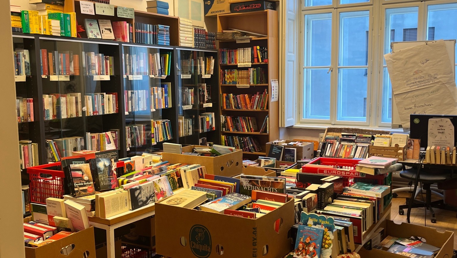 Das Konzept ist simpel: Gespendete Bücher werden zu niedrigen Preisen weiterverkauft und mit dem Erlös werden armutsbekämpfende Einrichtungen unterstützt.
