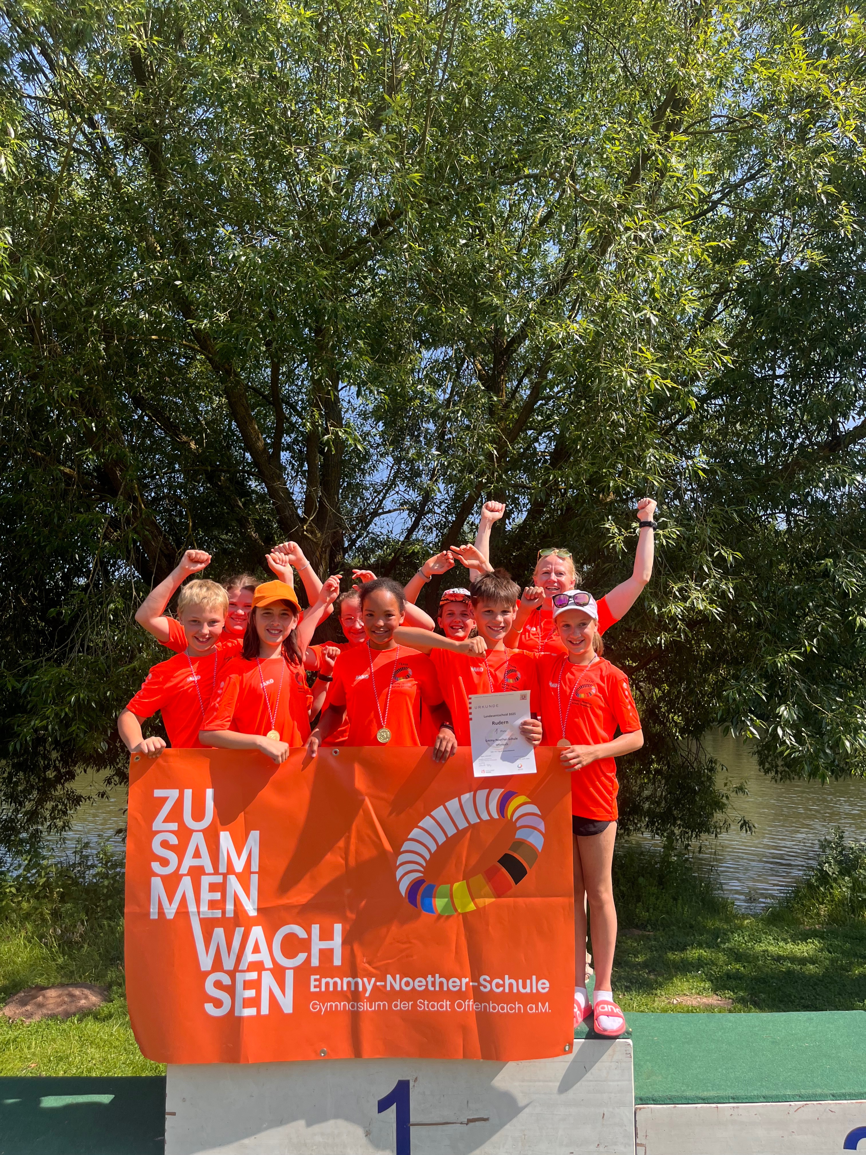 Hallo, wir sind Schülerinnen und Schüler der Schulruder-AG an der Emmy-Noether-Schule. Gemeinsam wollen wir Großes erreichen. Letztes Jahr wurden wir überraschend Landessieger im Rudern, doch um gegen die starken Rudermannschaften aus ganz Deutschland konkurrenzfähig zu sein, brauchen wir ein eigenes Boot!