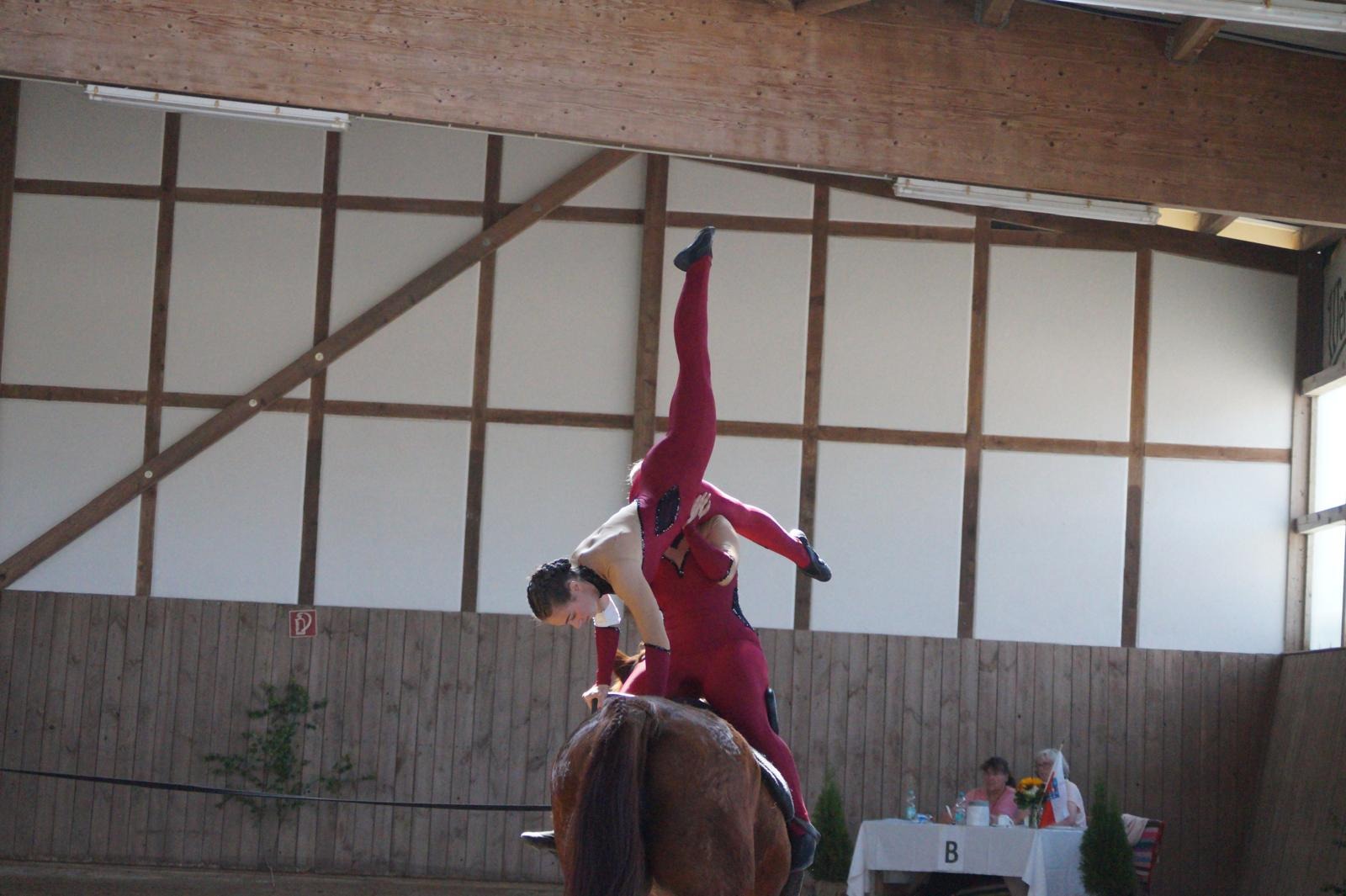 Gleichzeitig wachsen bei uns talentierte und motivierte Voltigierer heran, die das Potenzial für den höheren Sport haben und mit großer Leidenschaft trainieren.