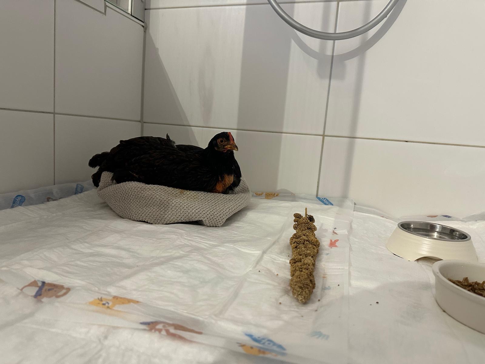 Derzeit wohnt sie, warm und sicher, in unserer Dusche, wo sie rund um die Uhr versorgt wird und sich langsam erholt.