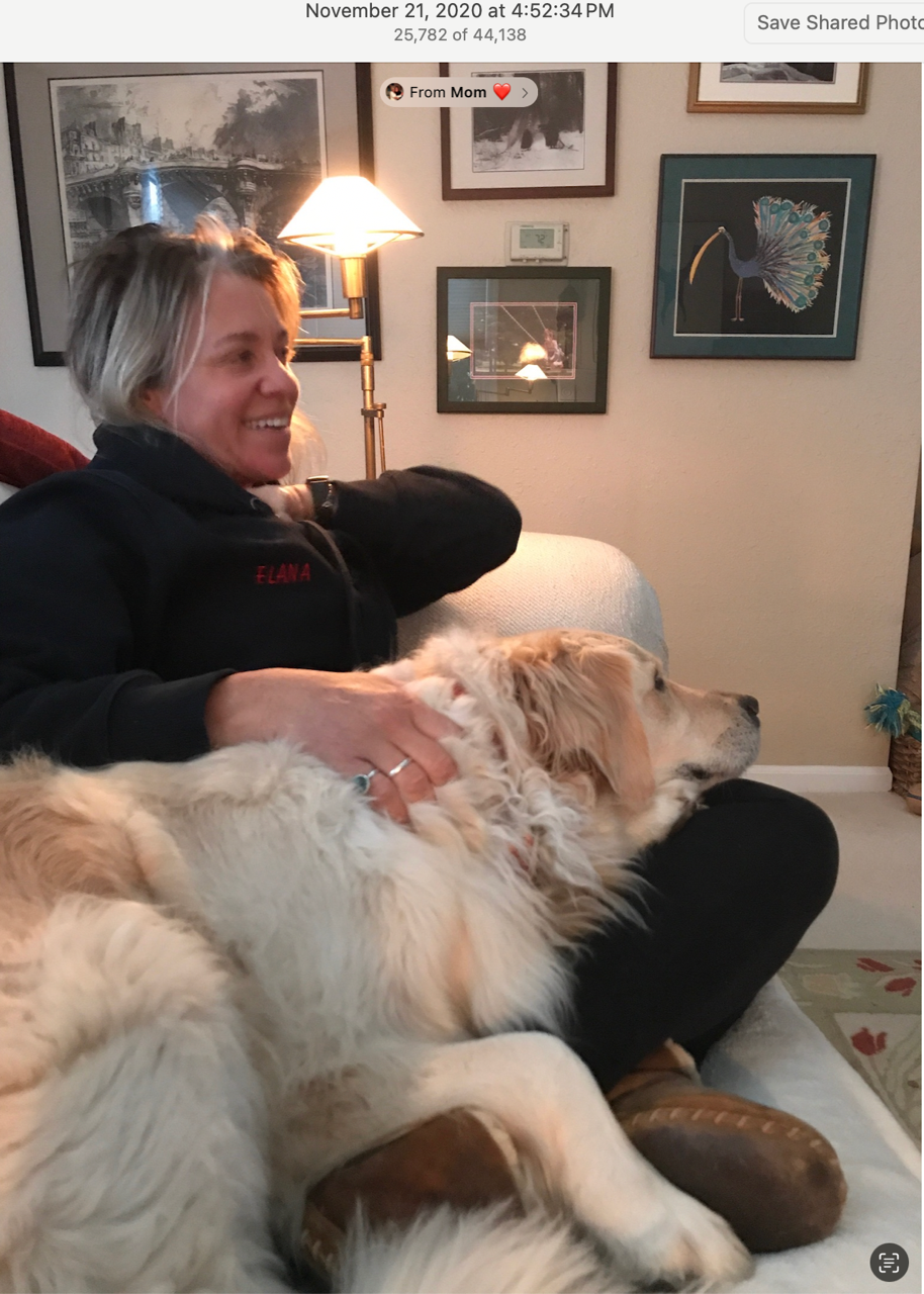 As her Mom’s trustee, Elana has been responsible for settling her Mom’s estate and is being sued in an ownership dispute over her Mom’s beloved ten-year-old golden retriever, Isabelle, who was also stabbed in the attack.