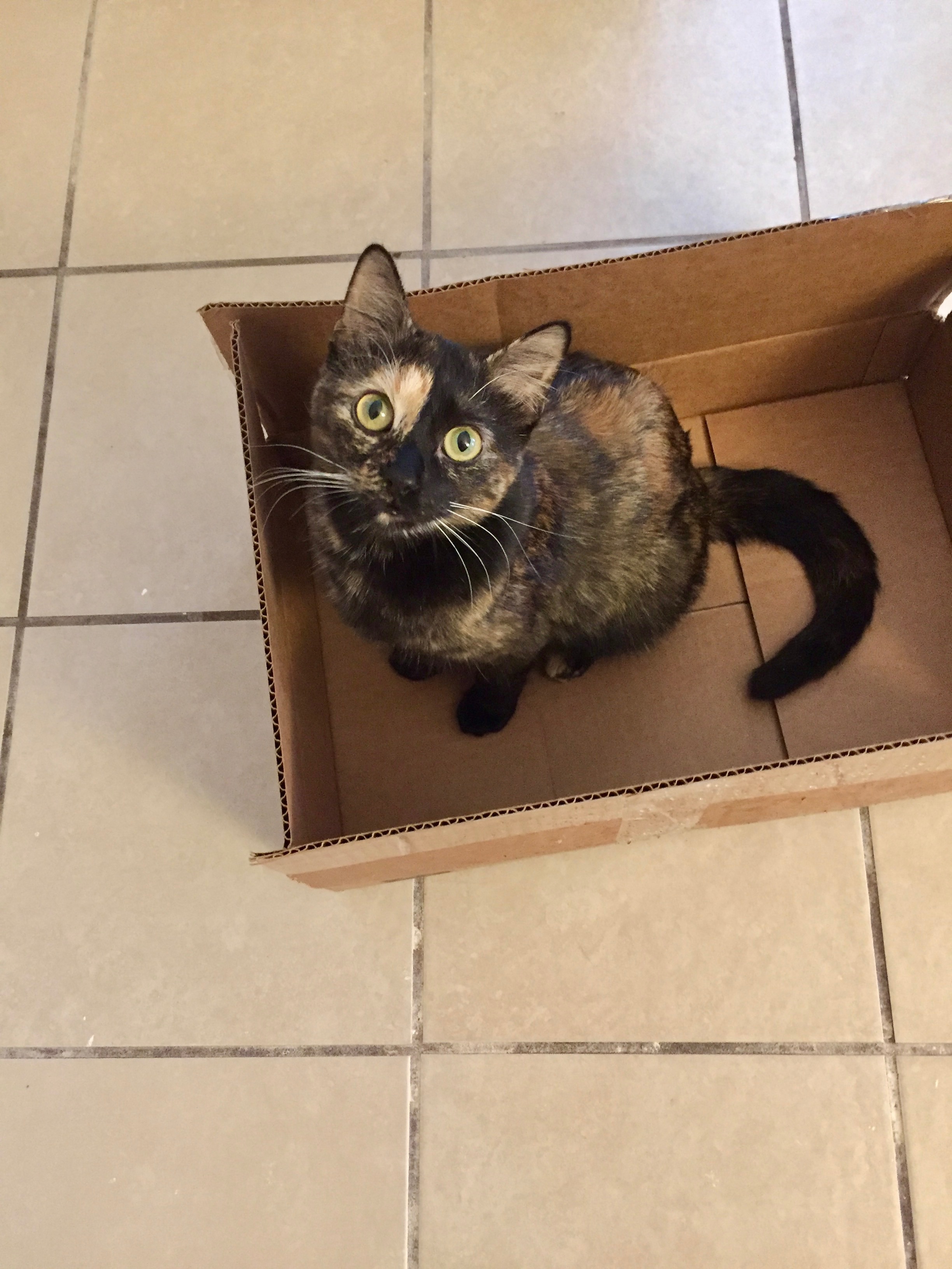 Tuesday, April 21, 2025, 8:25pm: I put my phone on top of a cardboard box on my kitchen table. My lovely and curious cat Francine decided to investigate the box, and took a bold leap from the ground to land flawlessly on top. She failed to realize that most of the box was hanging over the edge, and so her, the box, and my phone went tumbling to the ground. She of course landed on all four paws, but my phone did not, and now shuts down every 30 seconds.