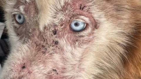 On April 7, 2022, he was posted on Facebook as a stray, sleeping in a stairwell in Spring Valley, NY, but he was gone when the police arrived. A few weeks later, on April 27, 2022, he was discovered by a contractor hired to work at a vacant house. The HVHS Humane Law Enforcement was called, and we immediately responded. The dog, a neutered male, red and cream adult Husky was found almost unresponsive by our HLE Officer, who seized the dog and rushed him to a veterinarian. We learned that the ownership of the house had changed; the house was in deplorable conditions and vacant except for this dog. He was found closed inside this house, where it is believed he spent at least 14 days between the initial post as a stray until the day the HVHS was notified. It is estimated he was without food for this period, and his only water source was a single toilet that had barely any water remaining when we arrived. We were skeptical he would survive his severely depleted condition. He was also suffering from a raging case of sarcoptic mange, which is contagious, and he tested positive for Lyme disease. With around-the-clock intensive care from our personnel, he has turned the corner, and we are now optimistic for his future. We anticipate he will remain in the care, custody and control of the HVHS for at least 4-6 months.