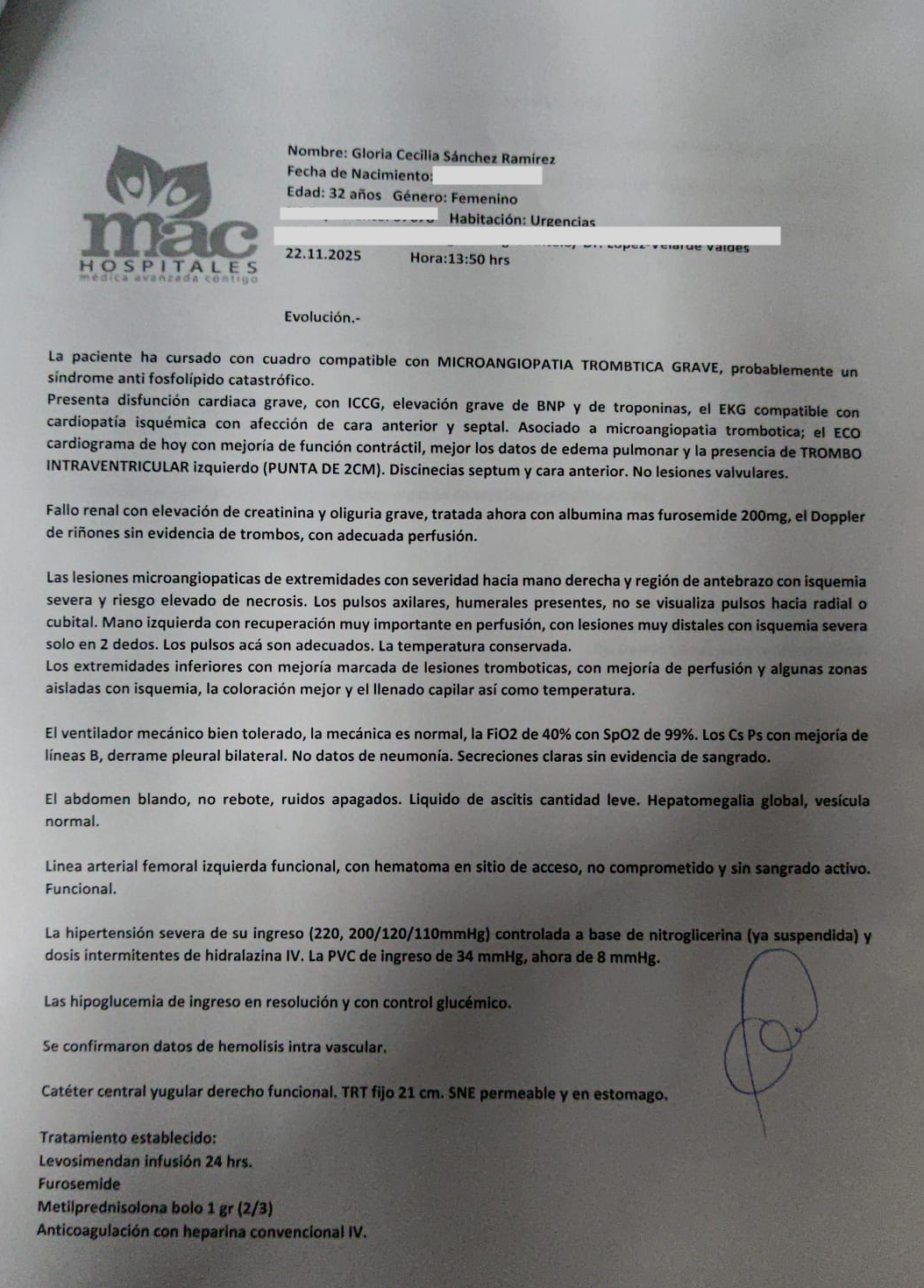 She was rushed to the hospital, and the diagnosis is devastating: Catastrophic Antiphospholipid Syndrome (CAPS), a rare and extremely serious condition characterized by the sudden formation of multiple blood clots in organs throughout the body, leading to multi-organ failure. This condition has a high mortality rate and requires immediate intensive care and aggressive treatment!!