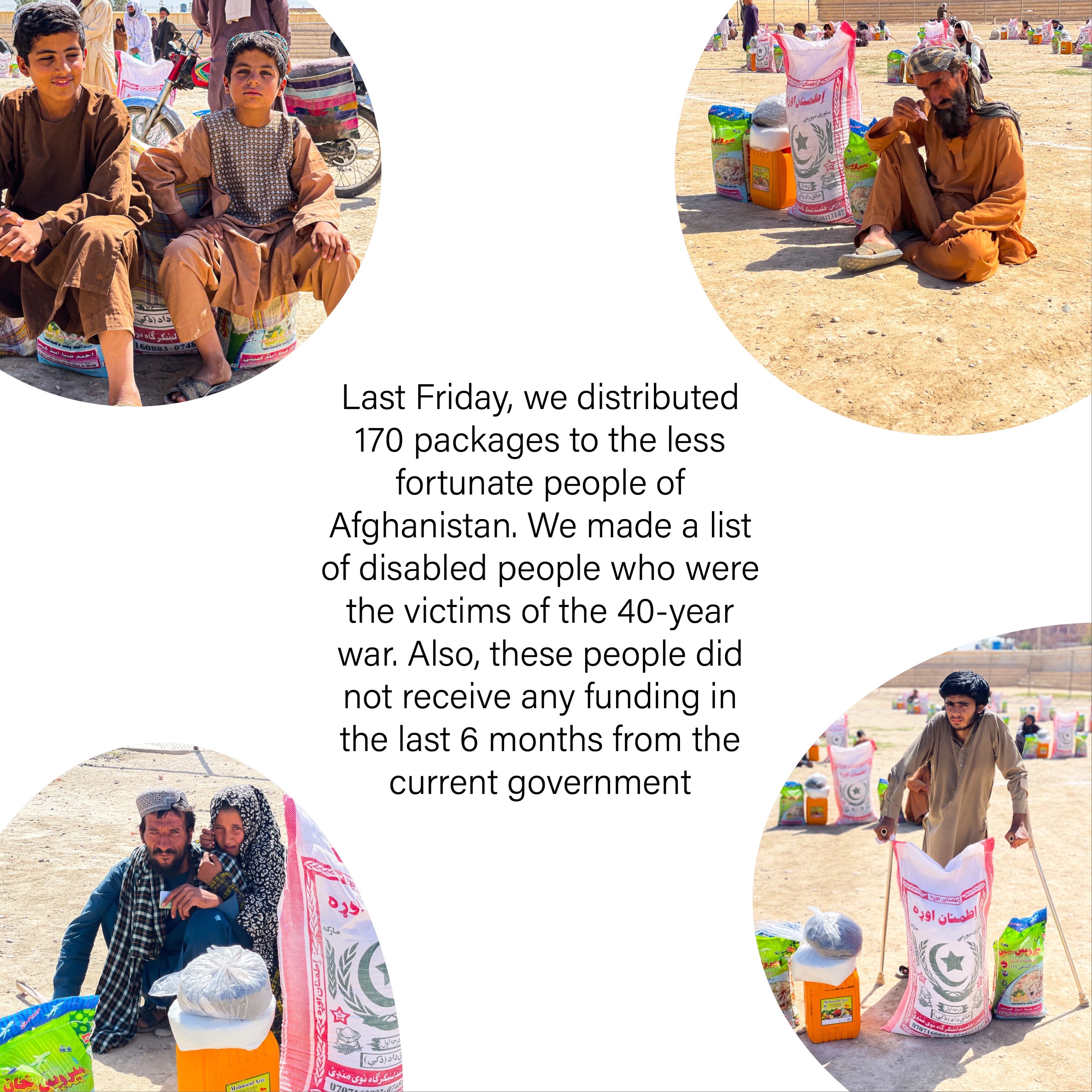 Twee jaar geleden konden we, met de hulp van gulle mensen (ook onder ABN-collega’s), 170 voedselpakketten uitdelen (EUR 50 per voedselpakket, ong. 2 maanden voedselvoorraad voor families van 4 personen) aan enkele van de meest kwetsbare mensen in Afghanistan—gezinnen die bijna 40 jaar oorlog hebben overleefd, velen met een beperking, velen vergeten door systemen die hen zouden moeten beschermen