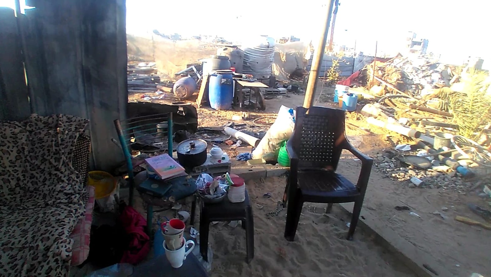 Today we are living in the shelter that my father built next to the ruins of our house.