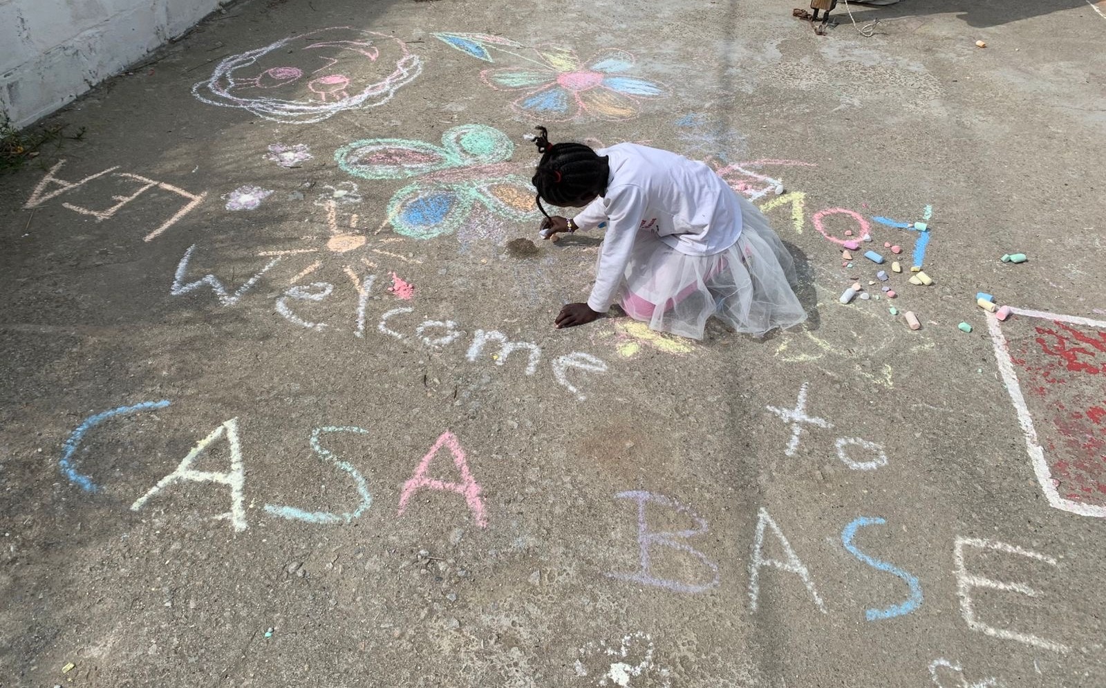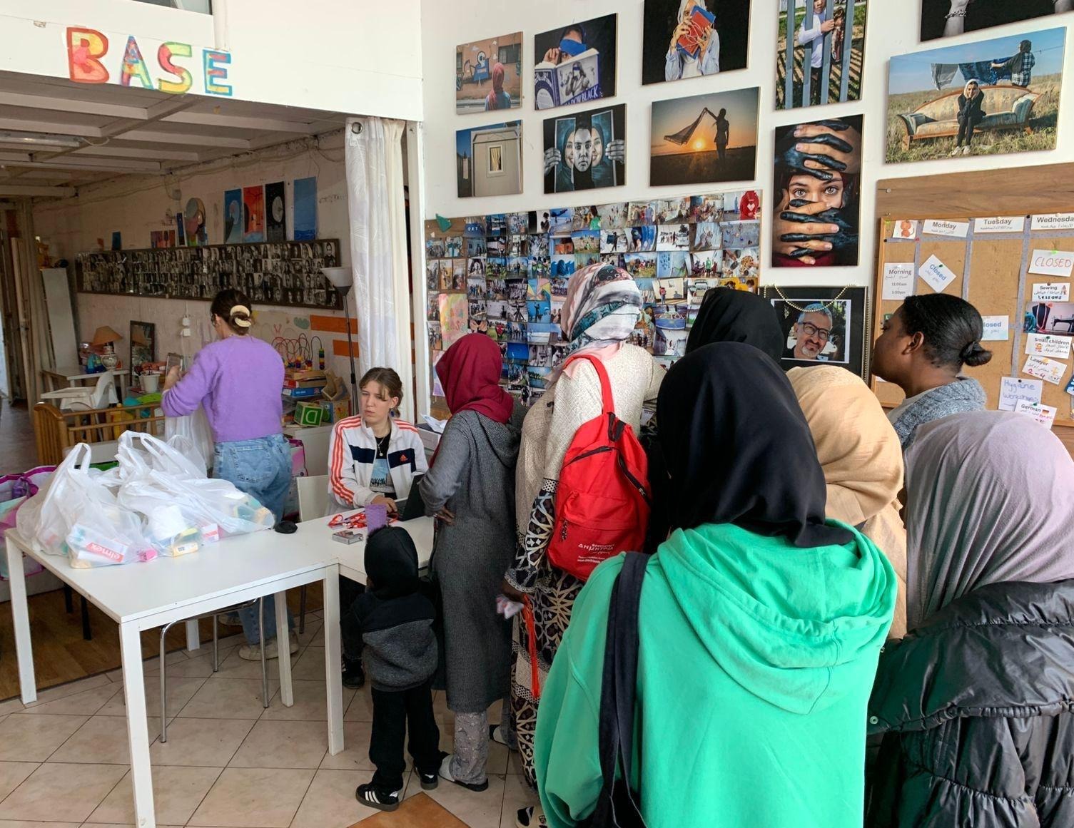 Casa Base is open four days per week and is the only place near the camp that provides women and families with: