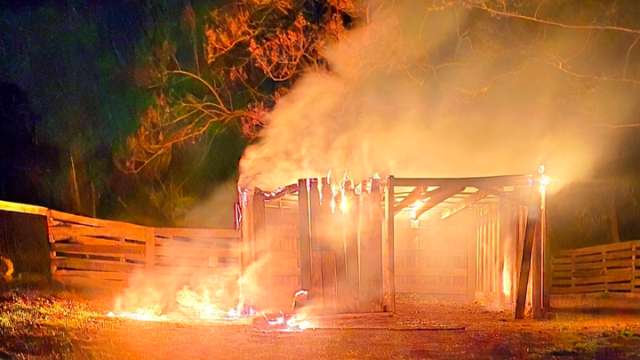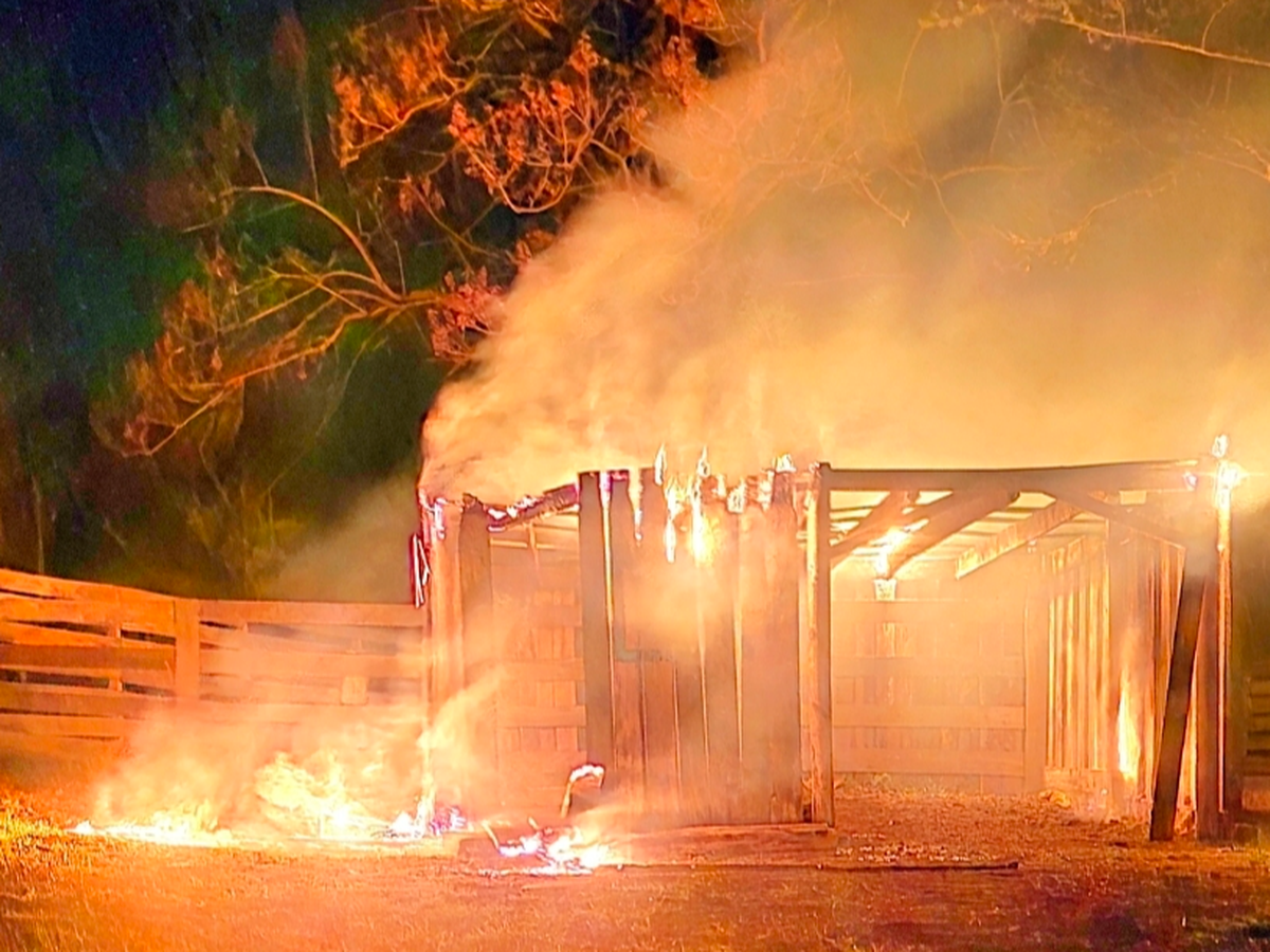 Several of our structures, building materials and horse trailer were set on fire.