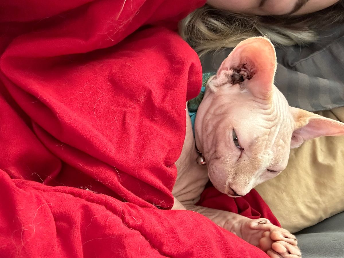 Hello, my name is Jessi and I’m fundraising for my cat, Anubis. He is a 5-6year old hairless cat that I rescued. In the past few days his health has been declining. It started with throwing up with specks of blood, lethargy, and lack of appetite. Then excessive drooling and pale gums. We’ve done x-rays and the vets want to do exploratory surgery or an ultrasound and then surgery to remove whatever is in his stomach causing his to be ill. I do not qualify for care credit or scratch and my family wants me to get rid of him to avoid the bills. Donations would help me prevent having to sign my cat over due to not being able to afford his emergency medical bills.