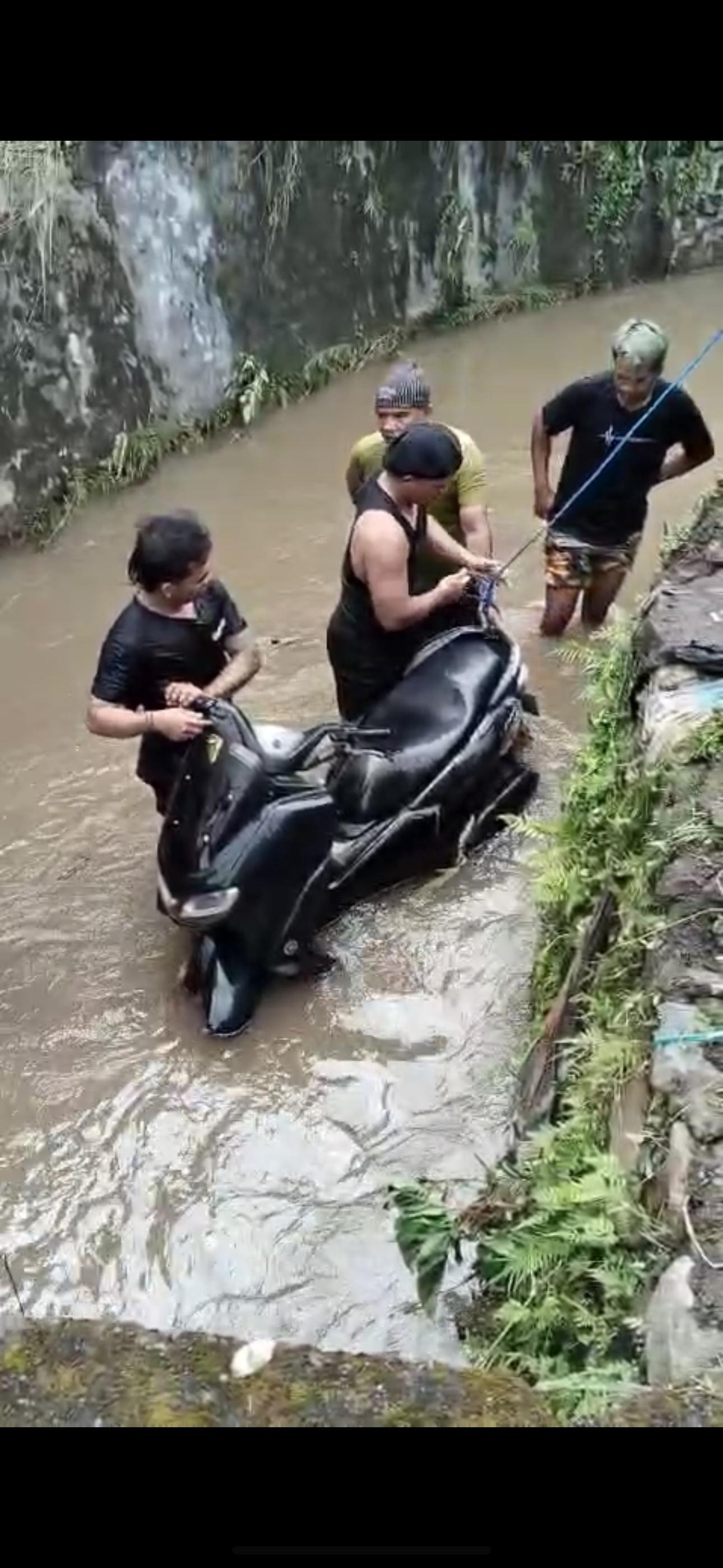 He wasn't able to find the bikes at first, and was afraid they were gone forever. Luckily with help from friends and neighbors, he eventually located them and was able to pull them from the canal with help. However, both bikes were badly damaged and the motors wouldn't start.
