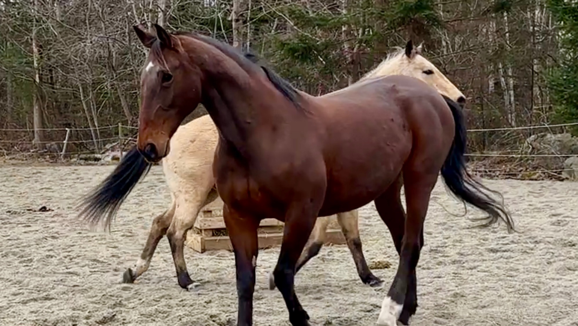 Pearl was rescued from a meat buyer by a kind soul from PEI. She had sustained a lower leg injury and was very thin. Ultimately, Pearl was surrendered to our Rescue to live her best retired life as lead mare of the herd.
