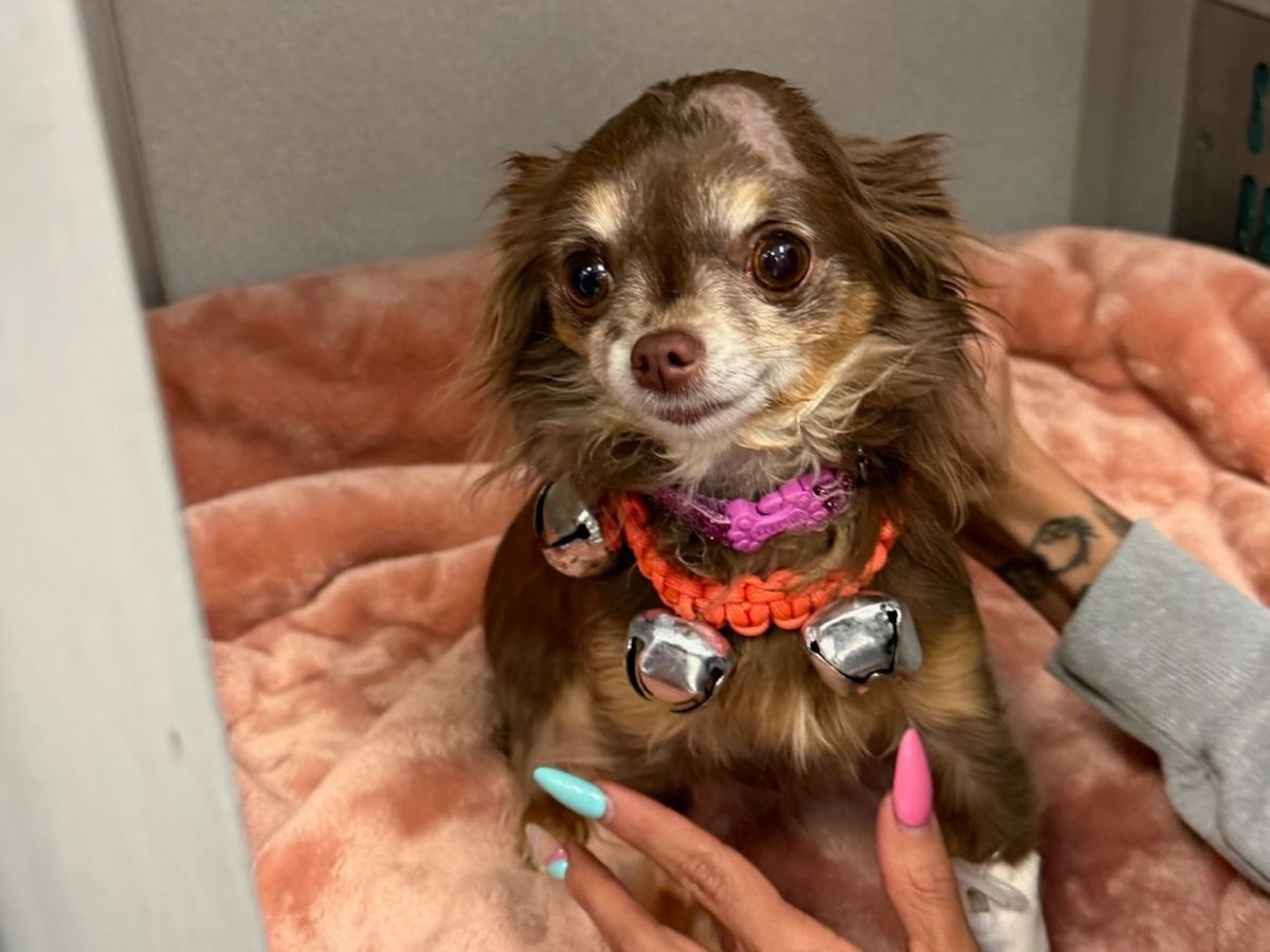 Unfortunately, today she was involved in a serious incident with one of our other dogs. Peanut was pinned down and bitten on the head, resulting in a traumatic injury. We rushed her to the animal hospital, where she suffered a seizure shortly after arriving. Her head is misshaped from the attack, and the swelling is causing neurological issues, including the seizures.