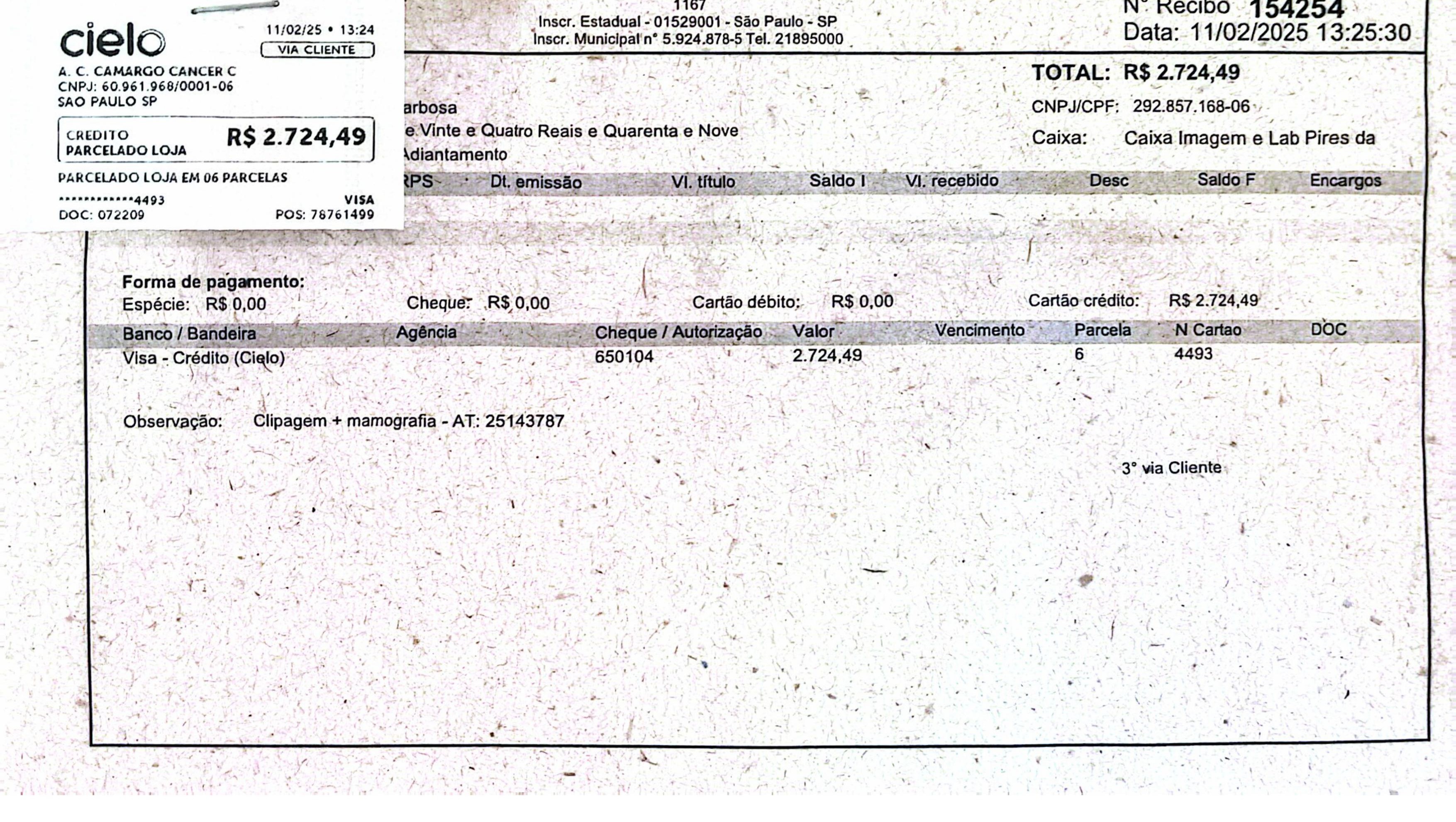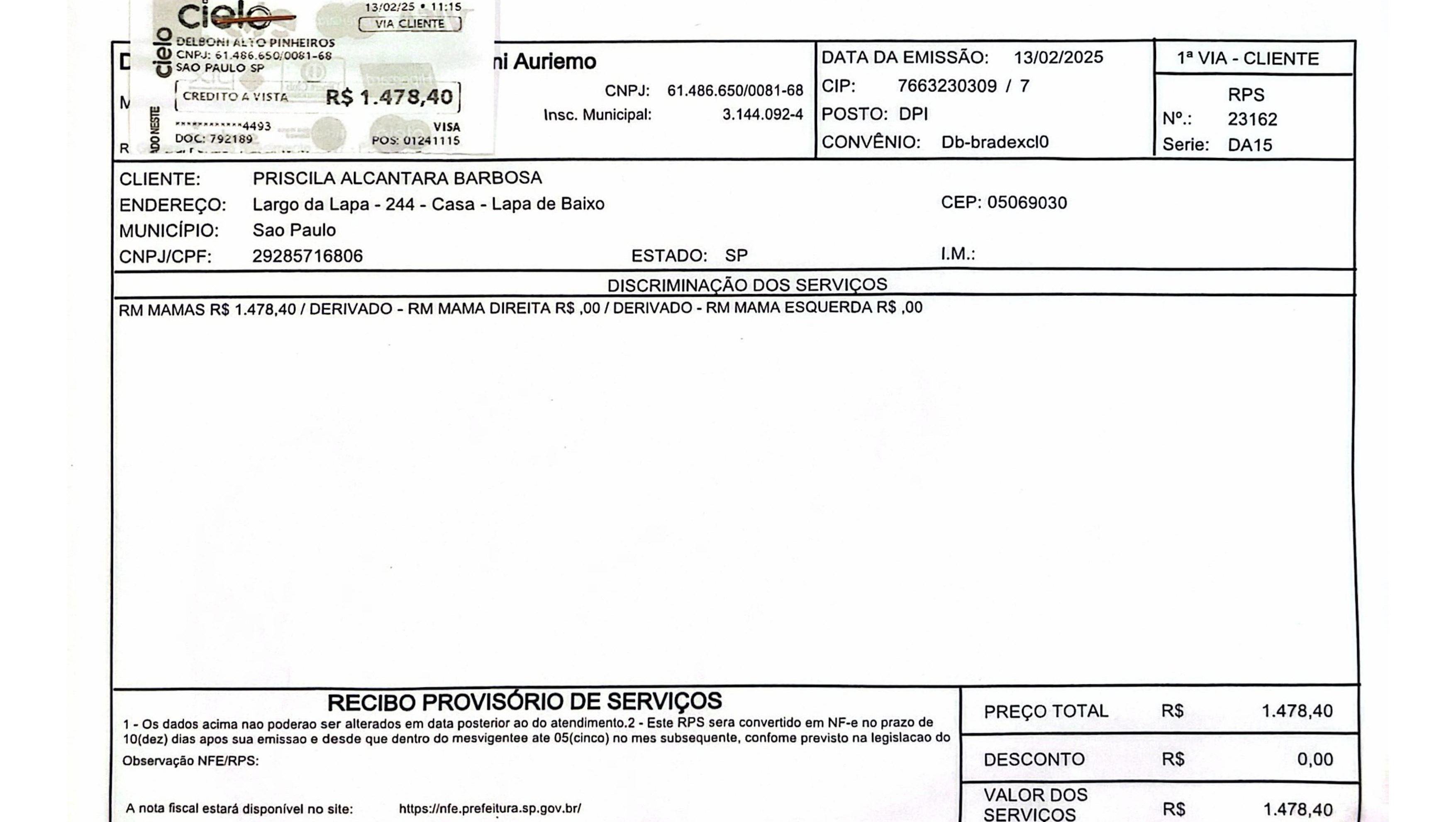 Cost of the exam: R$1,478.40