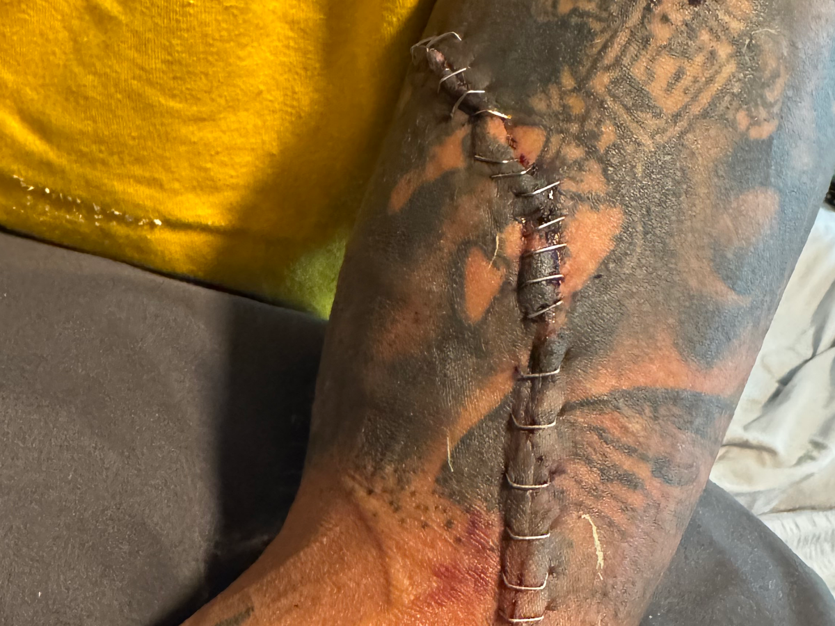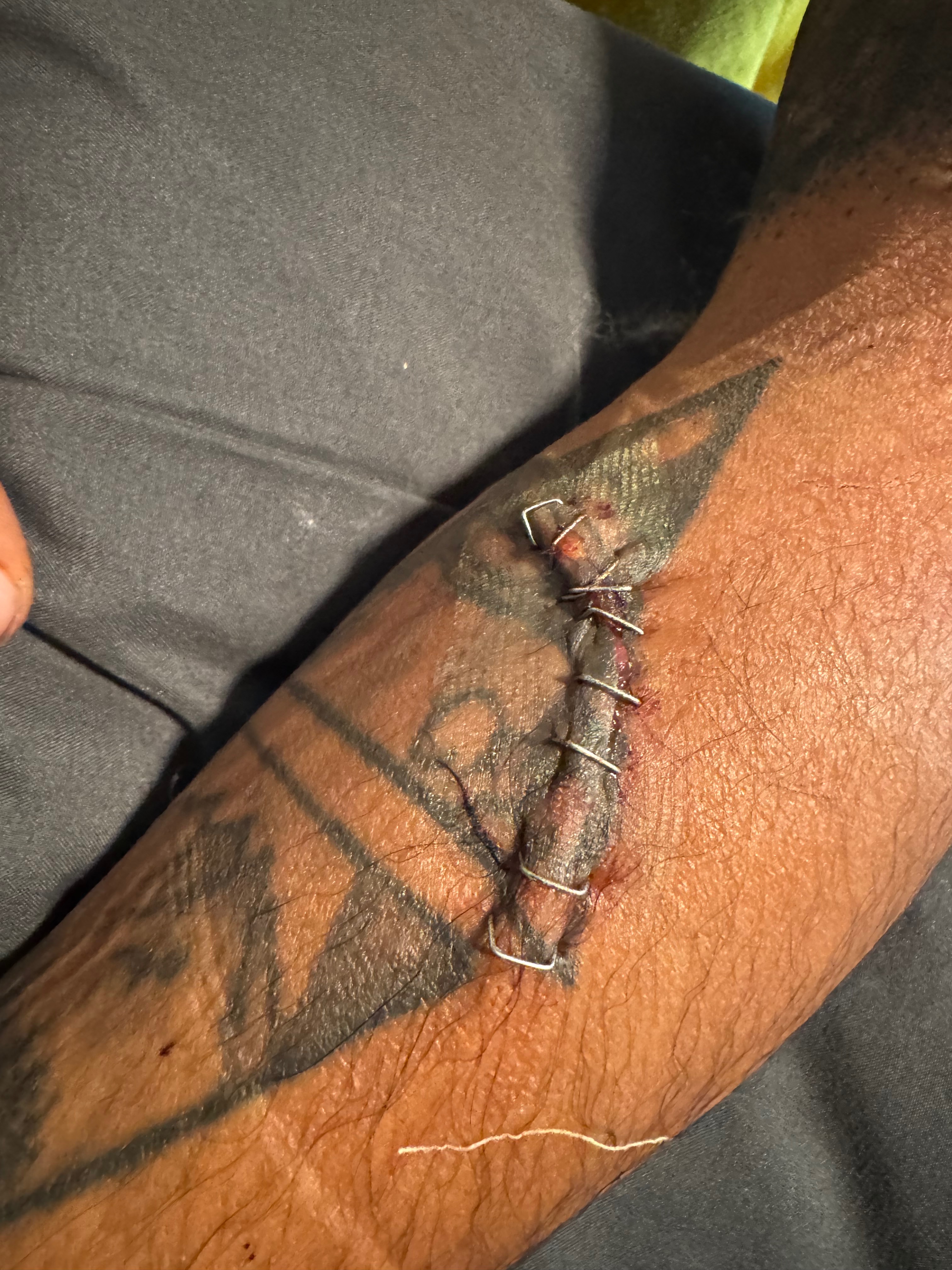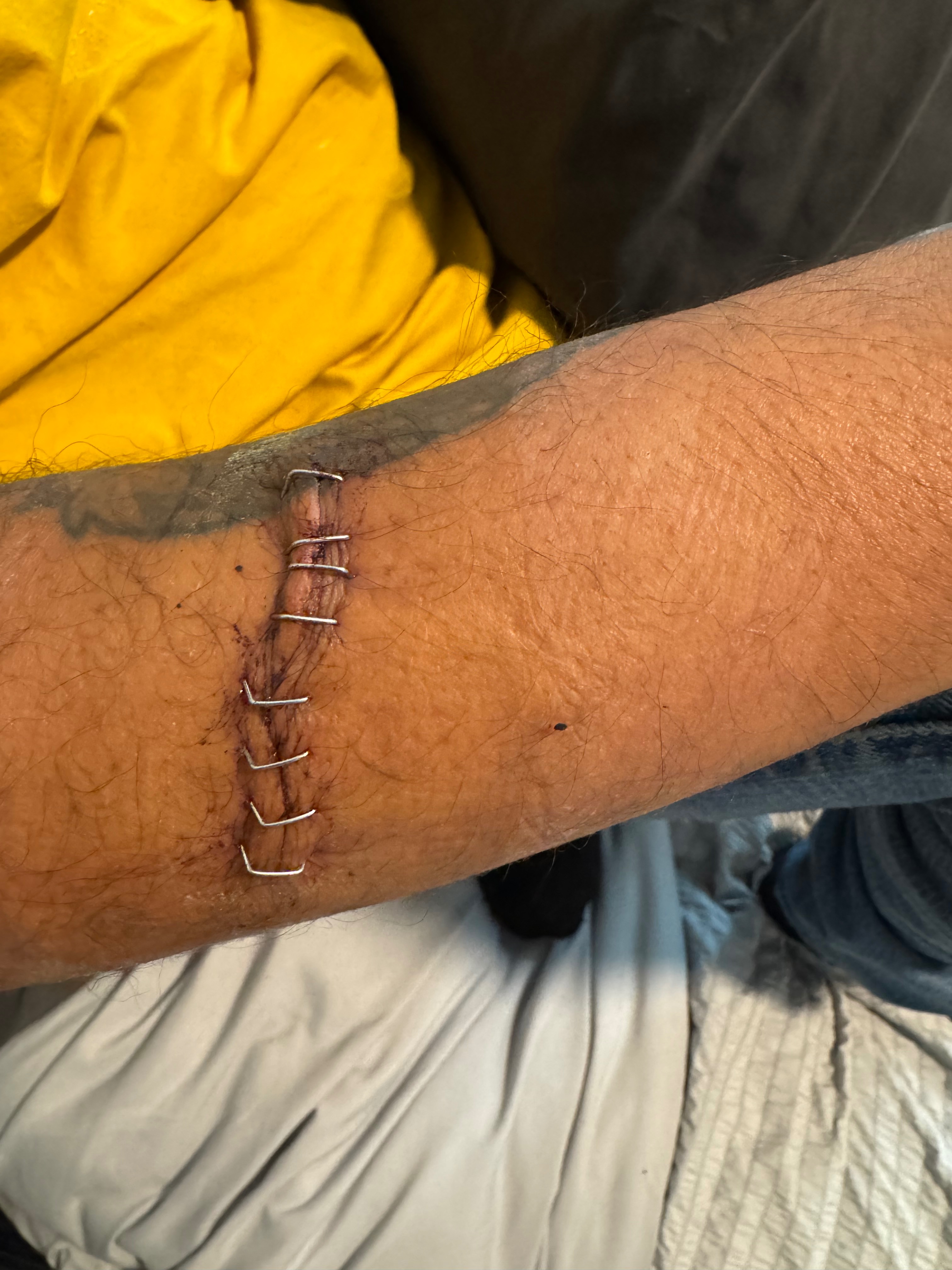 A few days ago, I was stabbed in both arms apparently with a broken bottle. The cuts went so deep they reached the bone, and I had to go through emergency and flown to Reno for attention.