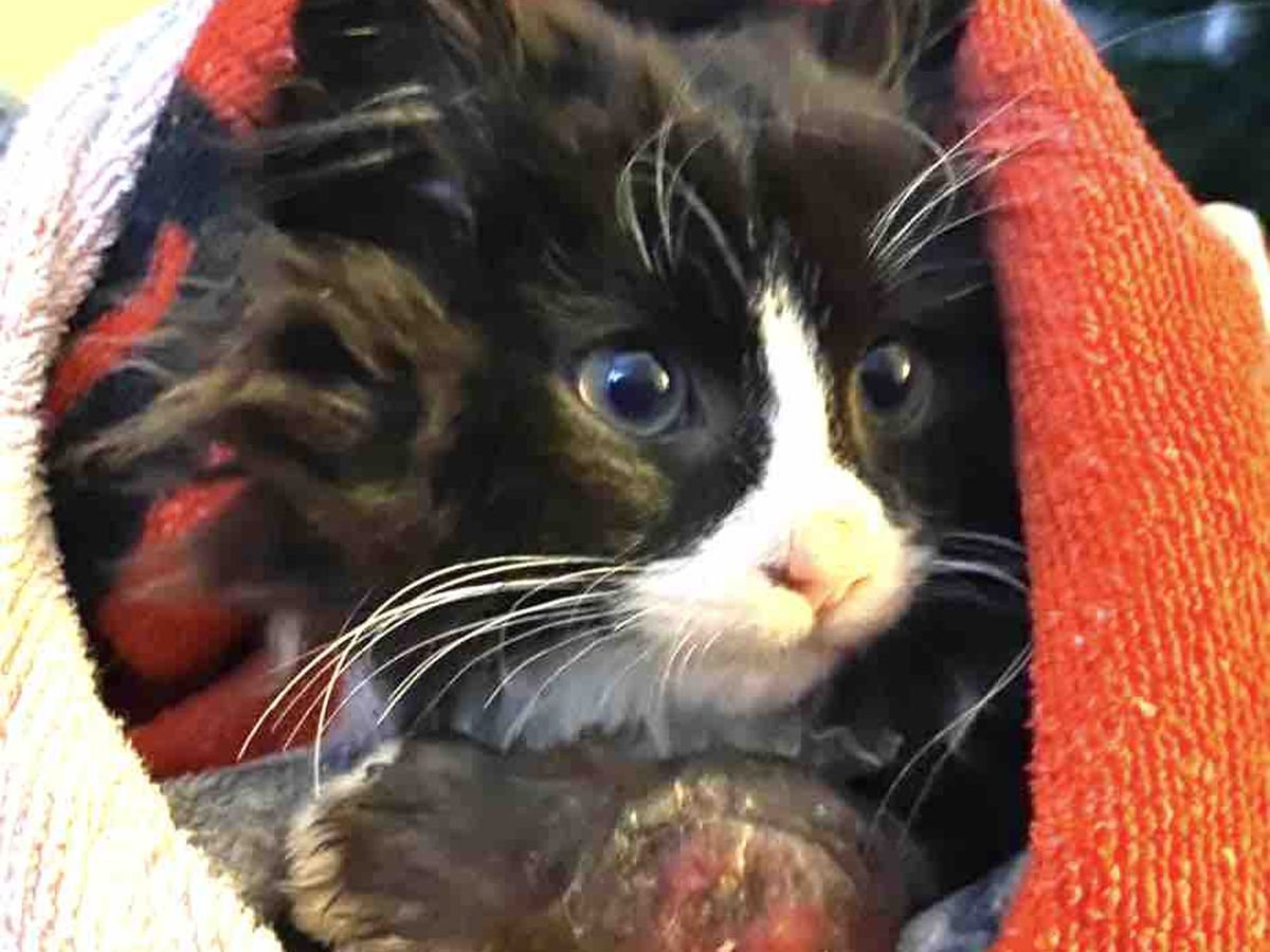 However his dirt was hiding something. A wound the size of a 50p on his leg. His leg swollen and bent. We rushed him to the Shrubbery Vets. They cleaned the wound and did X-rays to check for breaks. His tale becomes sadder as it transpires that there where no breaks but that he has a birth deformity which makes his leg buckle. So since this tiny ball of fluff could walk he has been walking on his knee. This has resulted in the skin being worn away. The fact he was found crying in the streets and that his wound was open and untreated leads us to believe he was dumped. It would have been noticed since he was born. How he has survived is a miracle.