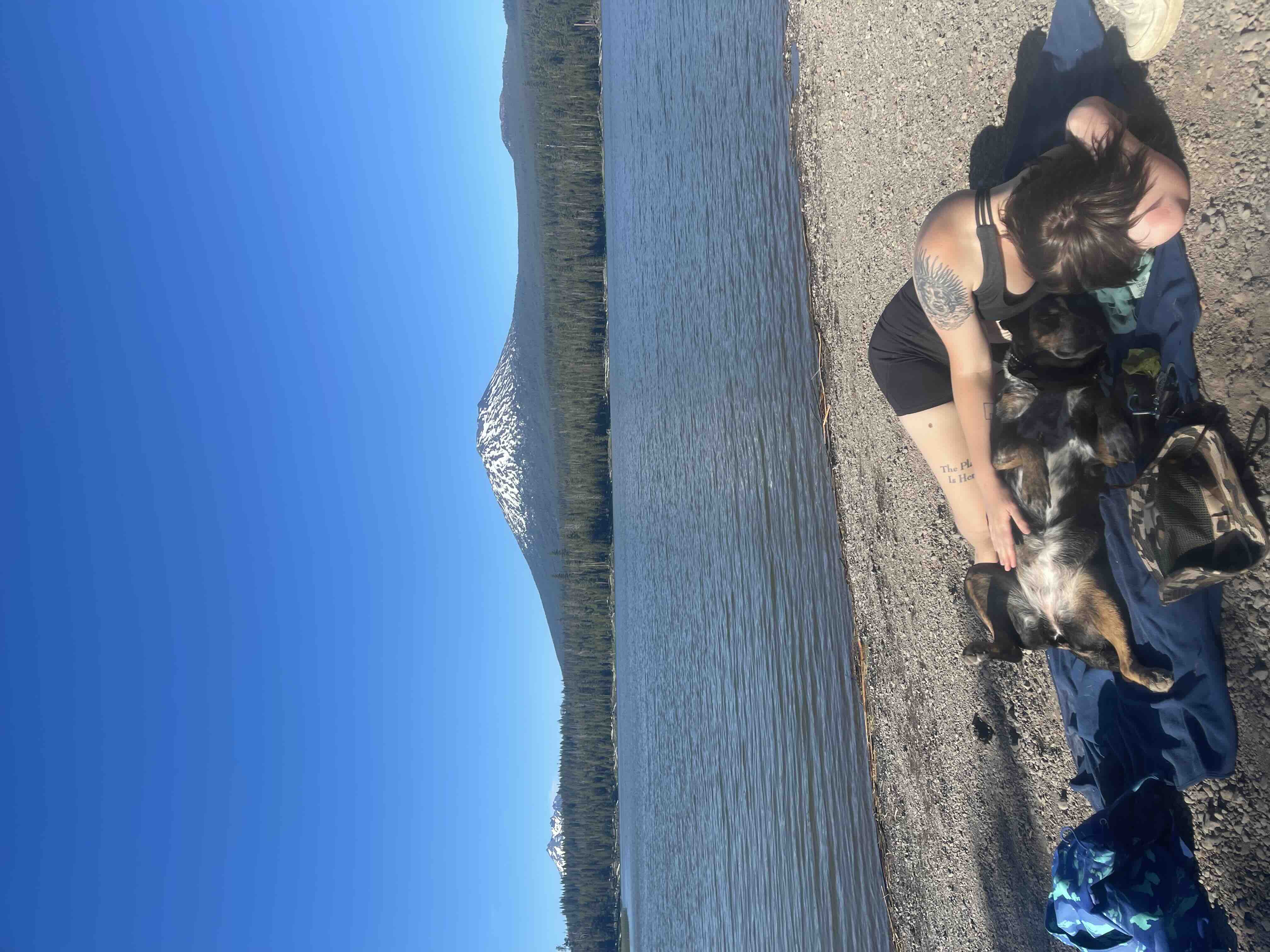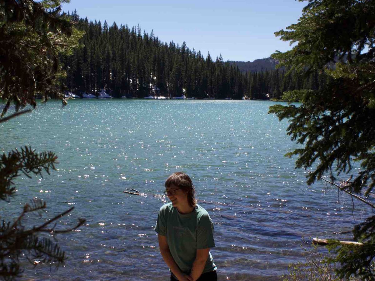 (Image description: Emery lays with their dog Nova on the shores of little lava lake with forest and mountains in the background) Im a non-binary queer who moved to Portland in September of 2021 from Minneapolis. I’m a bartender / food service worker and a dog parent to a beautiful 7 (almost 8!) year old cattle dog, Nova.