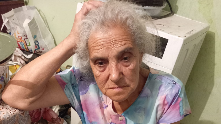'Ik heb gezien dat jullie mijn moeder willen helpen, en dat raakt mij diep. Mijn moeder heeft een schuld van ongeveer 10.000 euro, en ze moet steeds rente blijven betalen. Het huis van mijn moeder is helemaal kapot: het dak lekt, de ramen en deuren zijn stuk en zelfs het toilet werkt niet meer en heeft geen deur. Mijn moeder moet vaak eten op de pof kopen in de winkel, omdat het geld op is. Haar pensioen is maar rond de 200 euro per maand, en dat is gewoon niet genoeg om van te leven. Ik ben zelf wanhopig. Ik heb hoge bloeddruk en bloedarmoede door alle stress. Soms raak ik in een depressie.