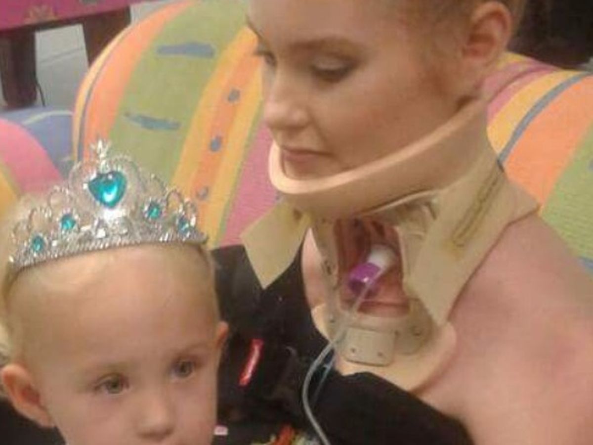 Emily has to wear a neck collar every day to stabilize her head because she lost the capability of doing it herself.