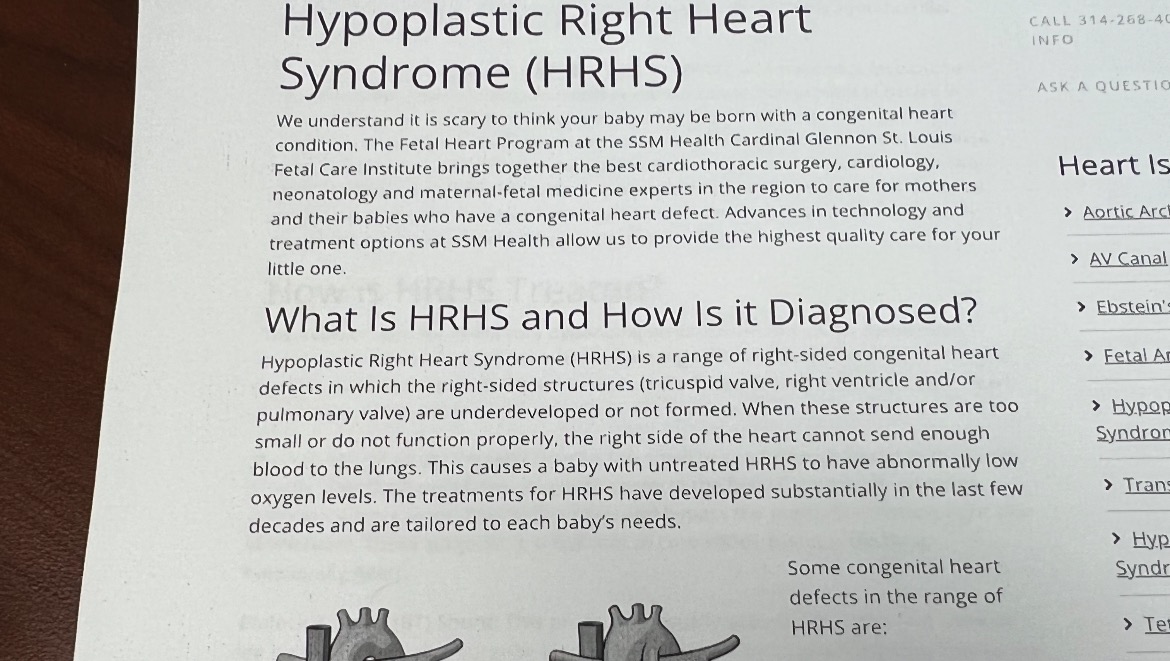 Their sweet girl has been diagnosed with Hypoplastic Right Heart Syndrome (HRHS) and will require several heart surgeries, the first being immediately after she is born. Her most recent appointment with the Neonatal Cardiac Surgeon has shown even further complications potentially requiring a heart transplant.