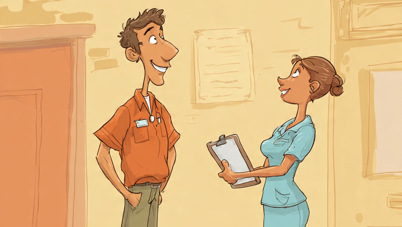 Example image speaking to her nurse in the hall outside of her door