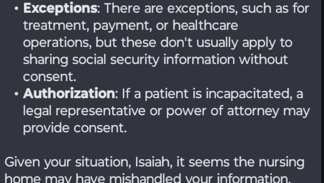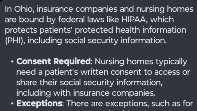 They don't automatically grant nursing care facilities authorization to a patients social security benefits without the patients consent.