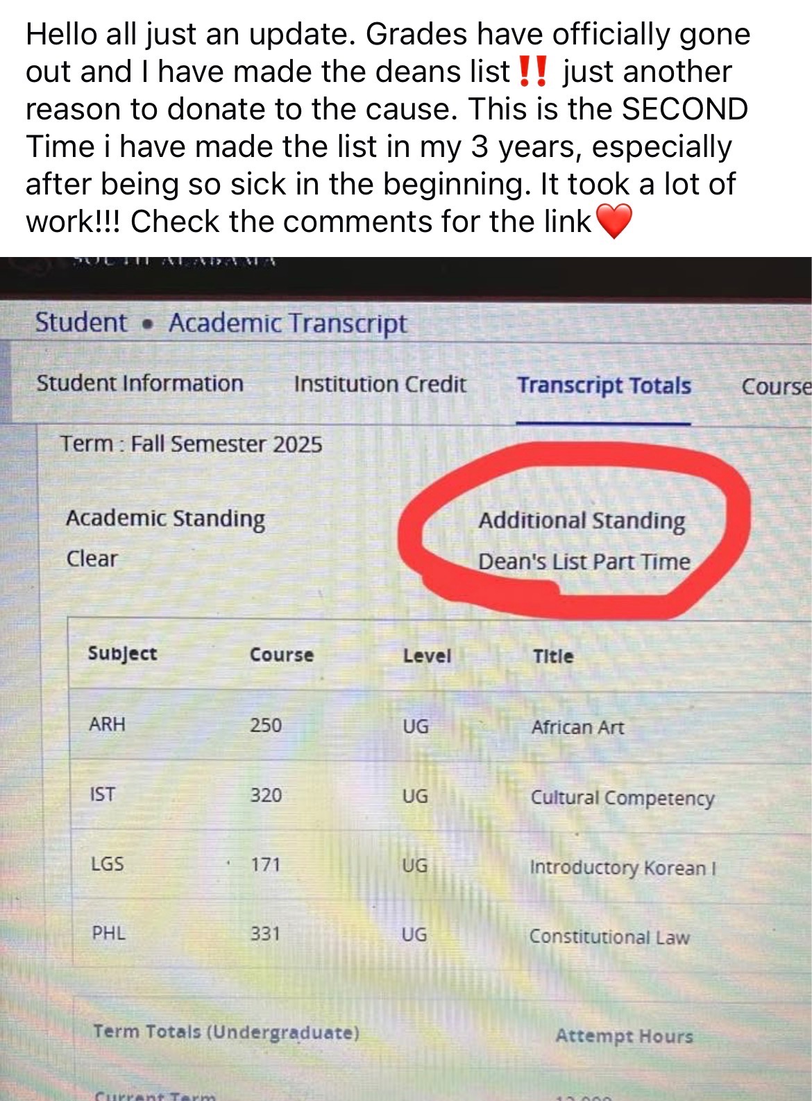 My name is Logan, and I am a junior in college currently maintaining a 4.0 GPA this semester while working toward my goal of becoming an immigration attorney. I am seeking support for an upcoming study abroad program in South Korea, an opportunity that is both academically meaningful and personally transformative. It is worth 6 credit hours and will be applied to my Bachelor's program.