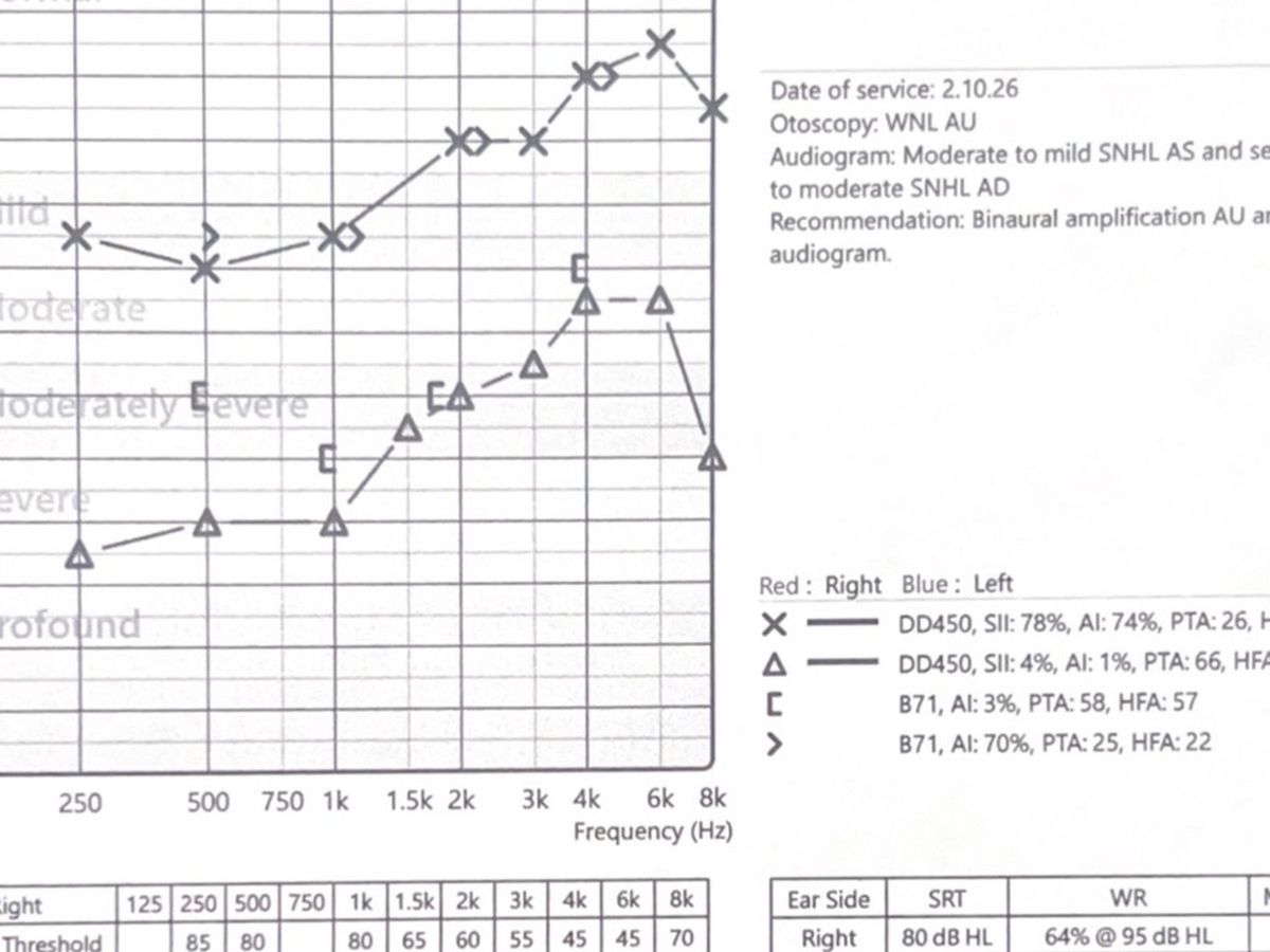 I am a woman who has been diagnosed with hearing loss and tinnitus since 2018. This diagnosis has changed so much about my daily life, making even simple conversations challenging and sometimes leaving me feeling isolated. The constant ringing in my right ear and the struggle to hear those around me have made it difficult to stay connected with friends, family, and colleagues.