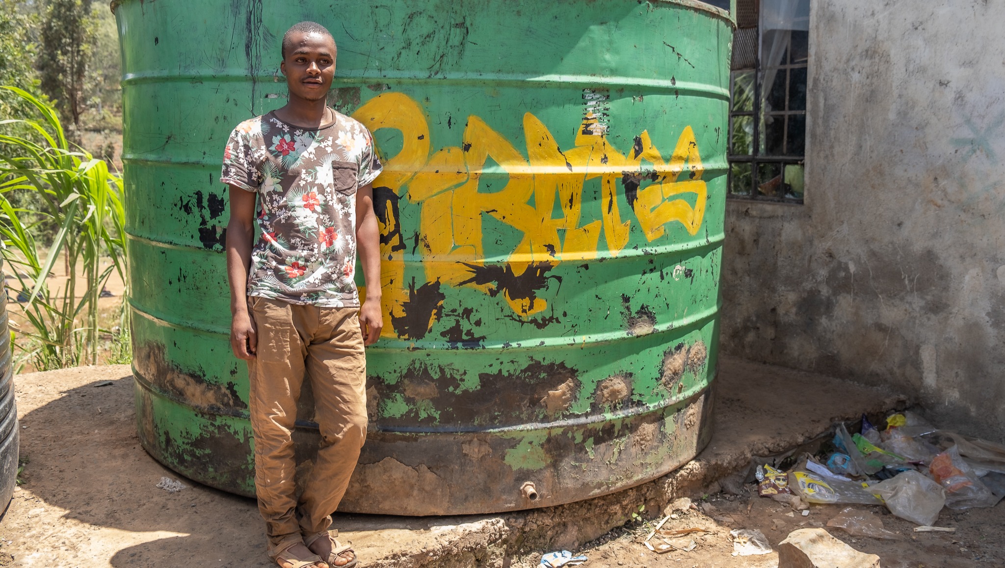 Kimani joined Mathare Green Park when his older brother, 27-year-old Christopher Maina, a beloved member of the group, was shot and killed by police in 2017. Following Maina’s killing, large protests broke out in Mlango Kubwa. That same night, the police officer who killed Maina returned to the park and shot bullet holes in the youths’ water tanks, purportedly enraged by the community-wide demonstrations against the police.