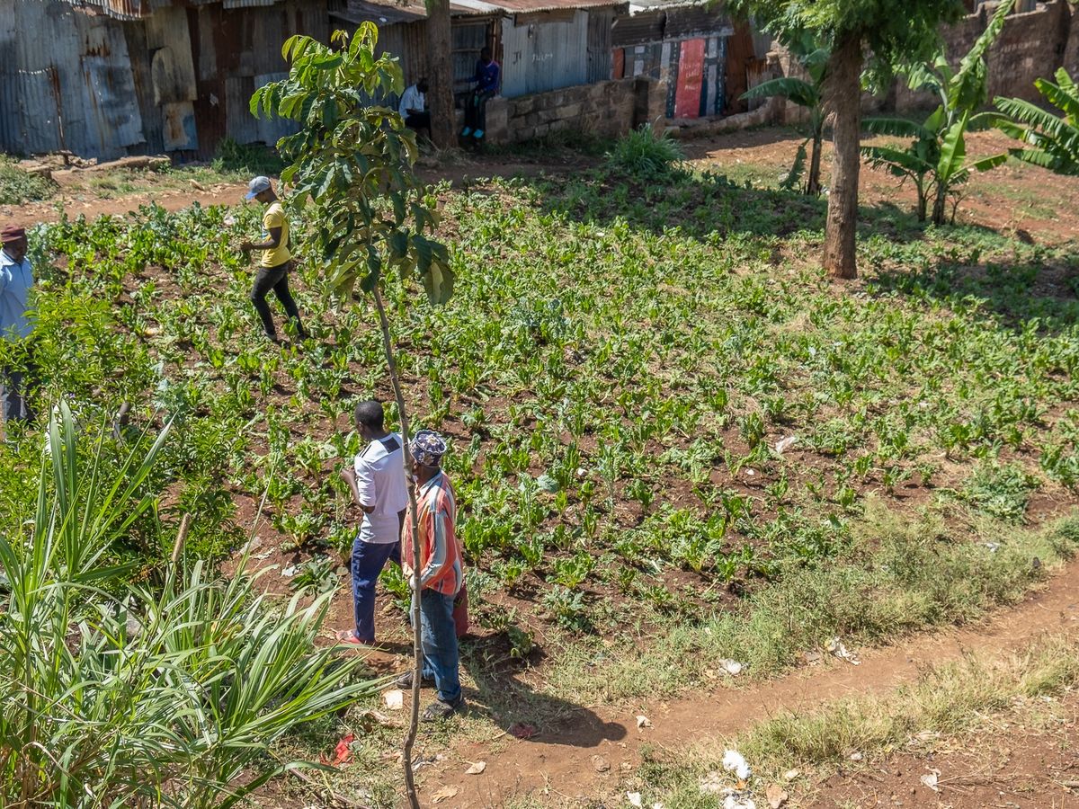 Kimani cultivates one of the land plots at Mathare Green Park, growing spinach. “This land has been very special to us,” he says. “It gives us an opportunity to grow food and sell our produce to the community. It is nearly impossible to find a piece of land as large as this one in the slums, so we are very lucky here.”