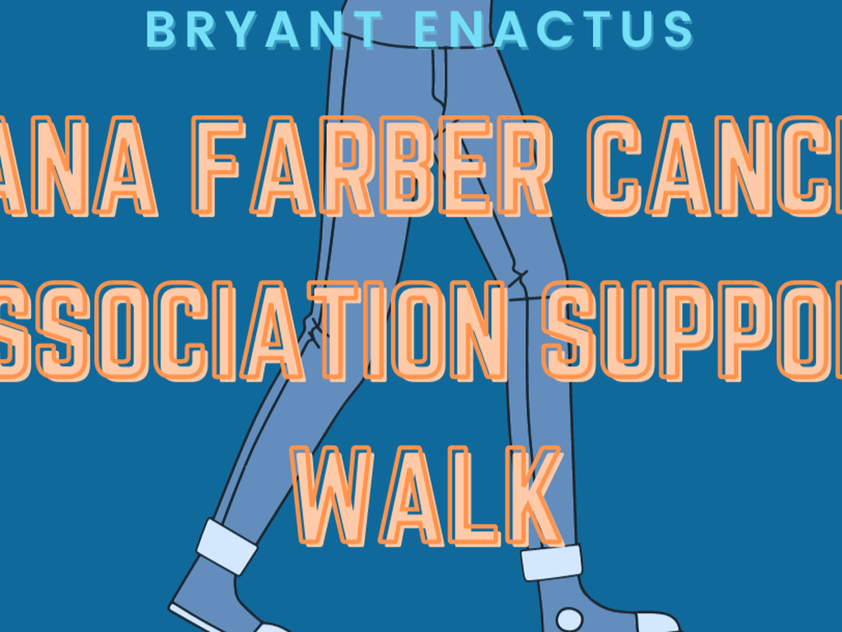 Bryant Enactus is raising money for the Dana Farber Cancer Institution by hosting a walk and basket raffle. All participants in the walk will raise money the month before the walk itself. The walk will take place Saturday, May 7th from 10:30am-12:30pm. We will also be hosting a basket raffle at the finish line of the walk, where people will buy raffle tickets for the baskets. All money raised leading up to the walk and during the basket raffle will be submitted here and donated to the Dana Farber Cancer Institute.