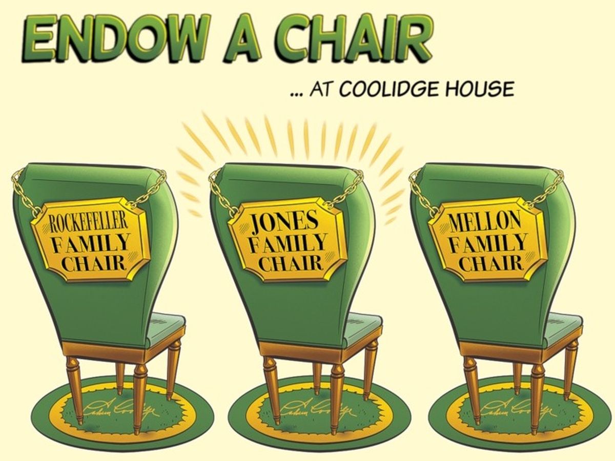 Your donation of $250 to the Calvin Coolidge Presidential Foundation will endow an actual chair in your name, complete with an engraved plate recognizing your contribution.
