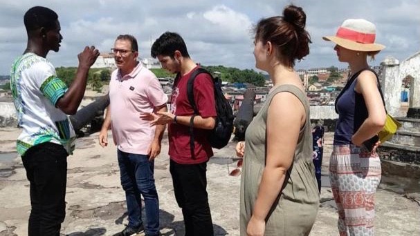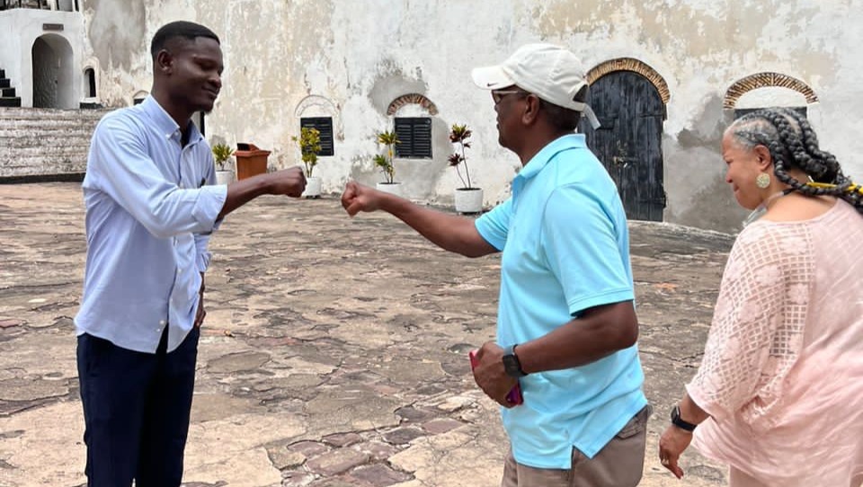 Enoch’s interpretive passion and tactful communication have not gone unnoticed by visitors, including Peter Rutkoff, an adjunct professor at SUNY Oneonta’s Cooperstown Graduate Program (CGP) who met Ampong on a tour at Elmina in August 2022 during one of his many research trips to Ghana. “Elmina is a horrible place; even more horrible because the surroundings are so beautiful,” Rutkoff recalled. “The docent I met there, however, was wonderful and knowledgeable.” Rutkoff gave Ampong his e-mail address and encouraged him to continue his museum education at CGP, one of the oldest museum studies programs in the country. Working closely with CGP Director Professor Gretchen Sorin, Enoch completed his application and in 2023 was formally accepted into the two-year graduate program.