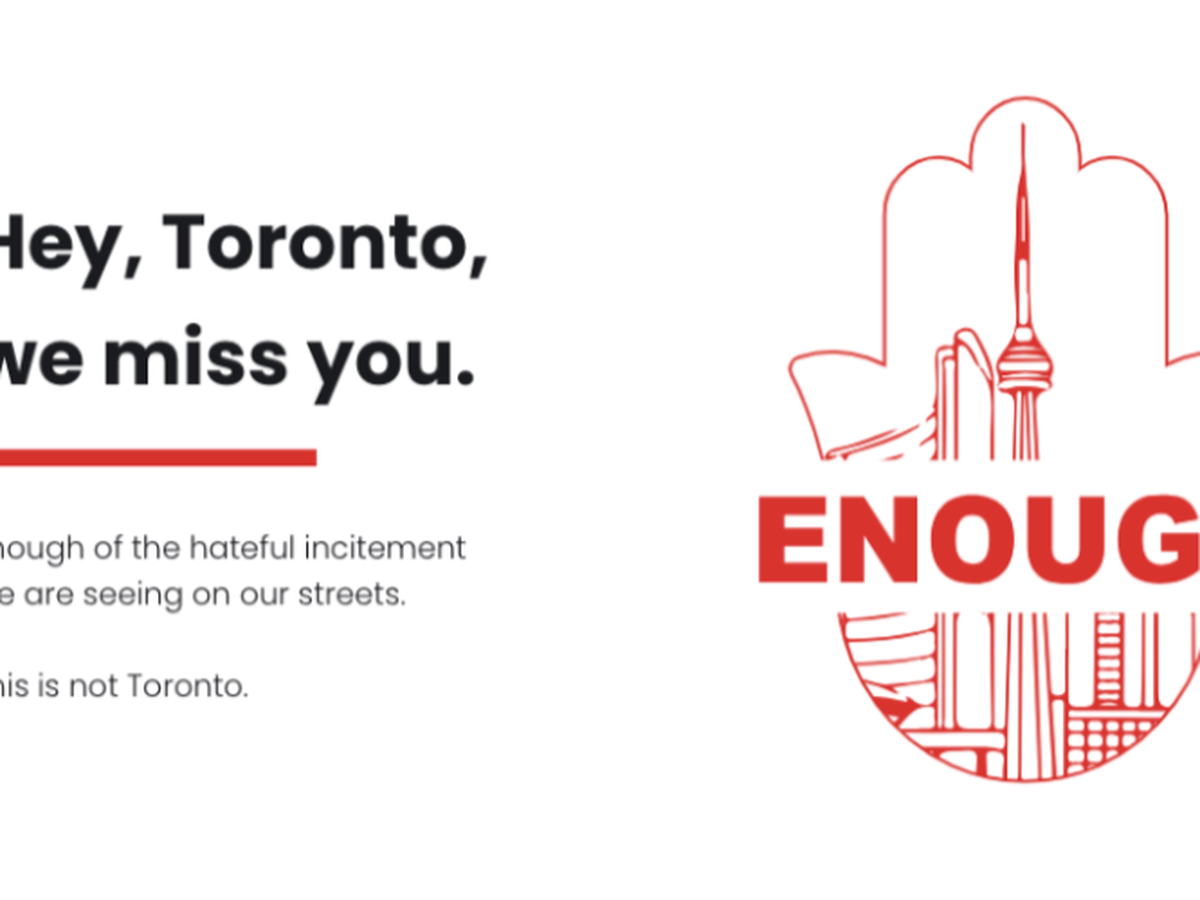 ENOUGH T.O. is a grassroots movement committed to restoring all that is good about Toronto. We have had enough of the hateful incitement we are seeing all over our streets — property damage, intimidation, harassment, threats and physical violence